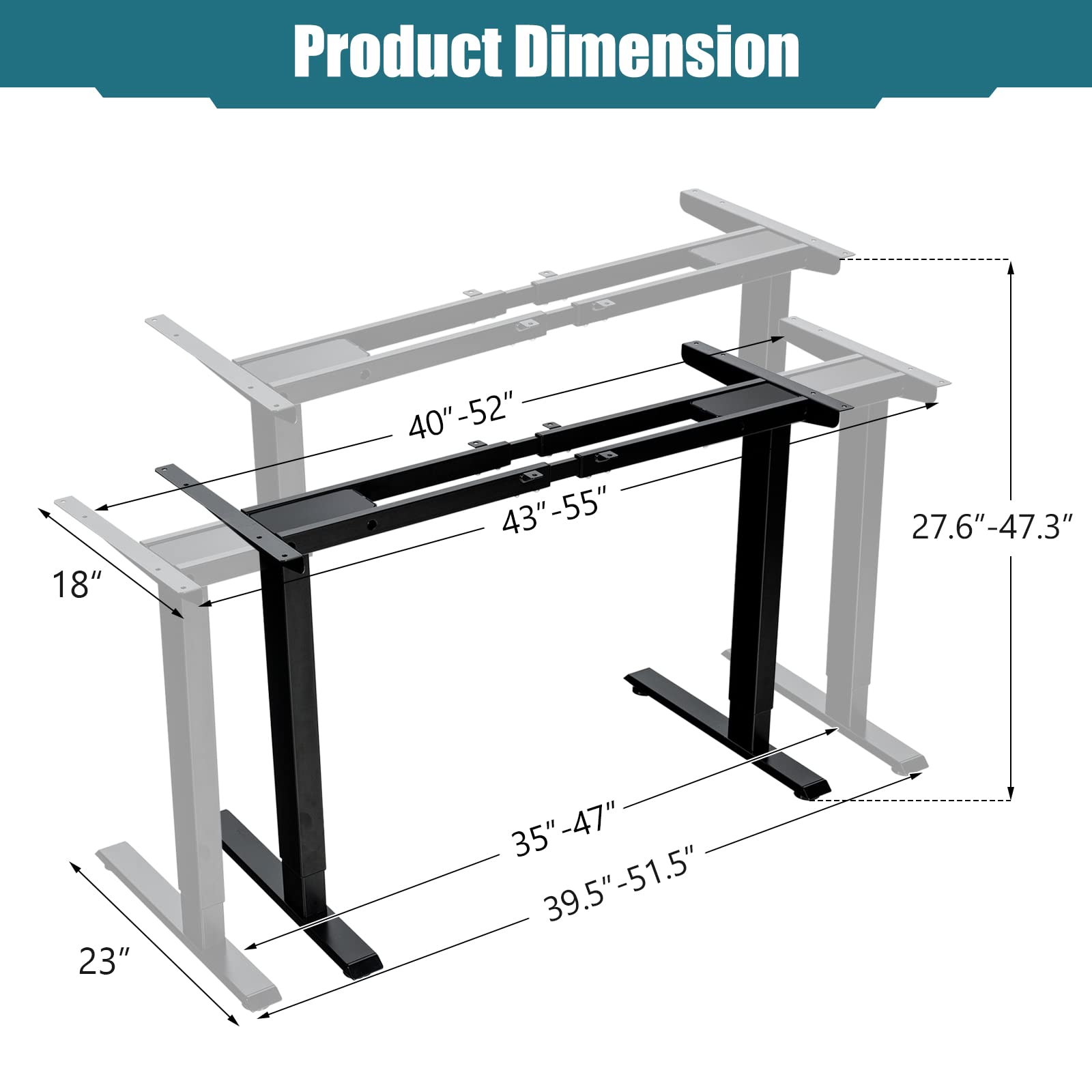 - Simple Assembly Saves Time: It's easy and time-saving to finish the entire installation. As a reminder, the package only contains a stand-up desk frame. Its adjustable width is between 43"and 55" suitable for the desktop of different desktops. The min size of a desktop is 24"x 47"(L x W) and the max is 30"x 63"(L x W).