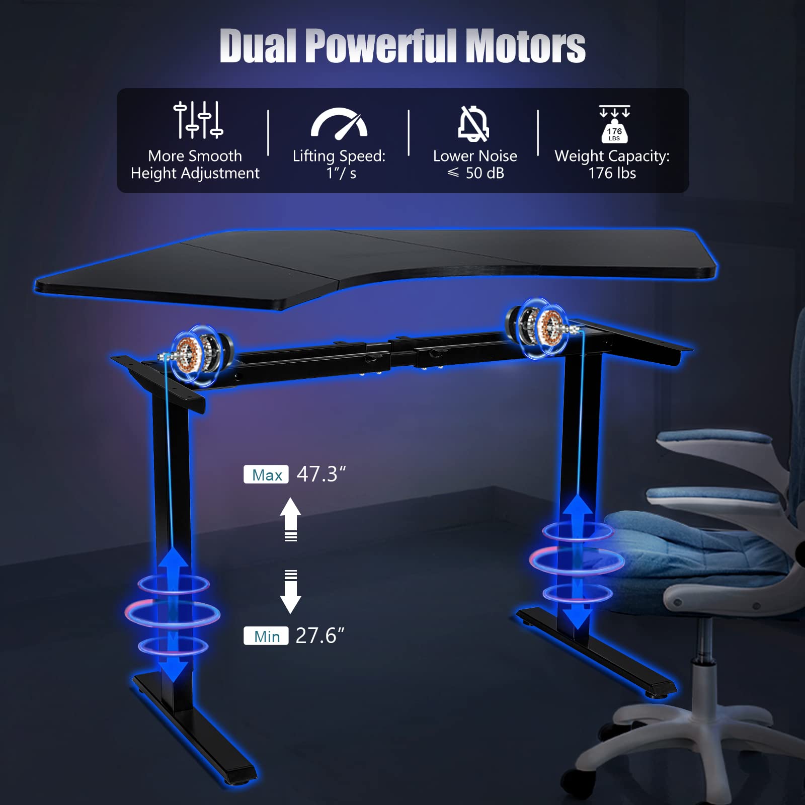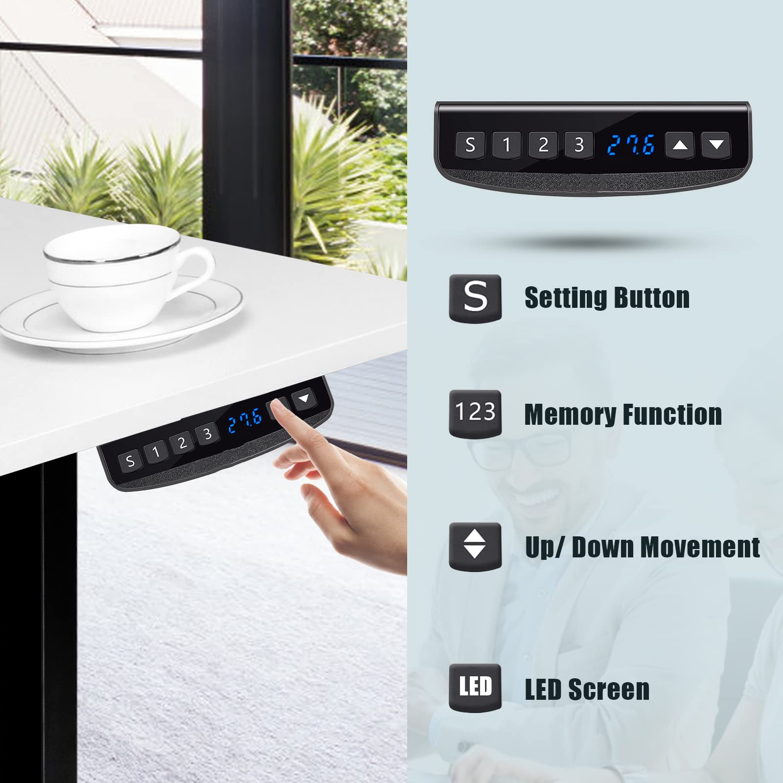 - Extra Storage to Keep Tidy: To make full use of every space, the adjustable desk frame comes with a hanging hook for your headphones and a cable tray to keep various wires well organized. Besides, overheating protection will stop the operation time to protect motors when overheating or error occurs.