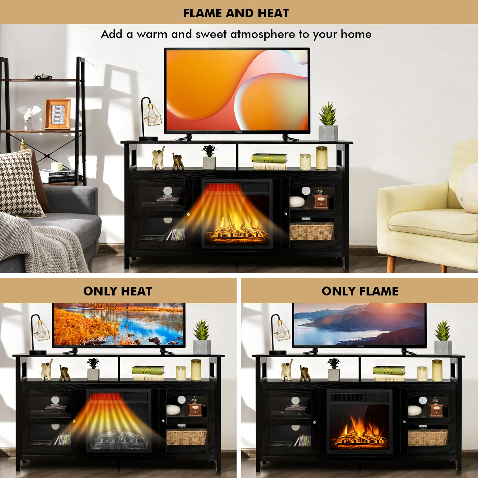 Tangkula Fireplace TV Stand, Farmhouse Media Console Table w/18 1500W Electric Fireplace for Flat Screen TVs up to 65"