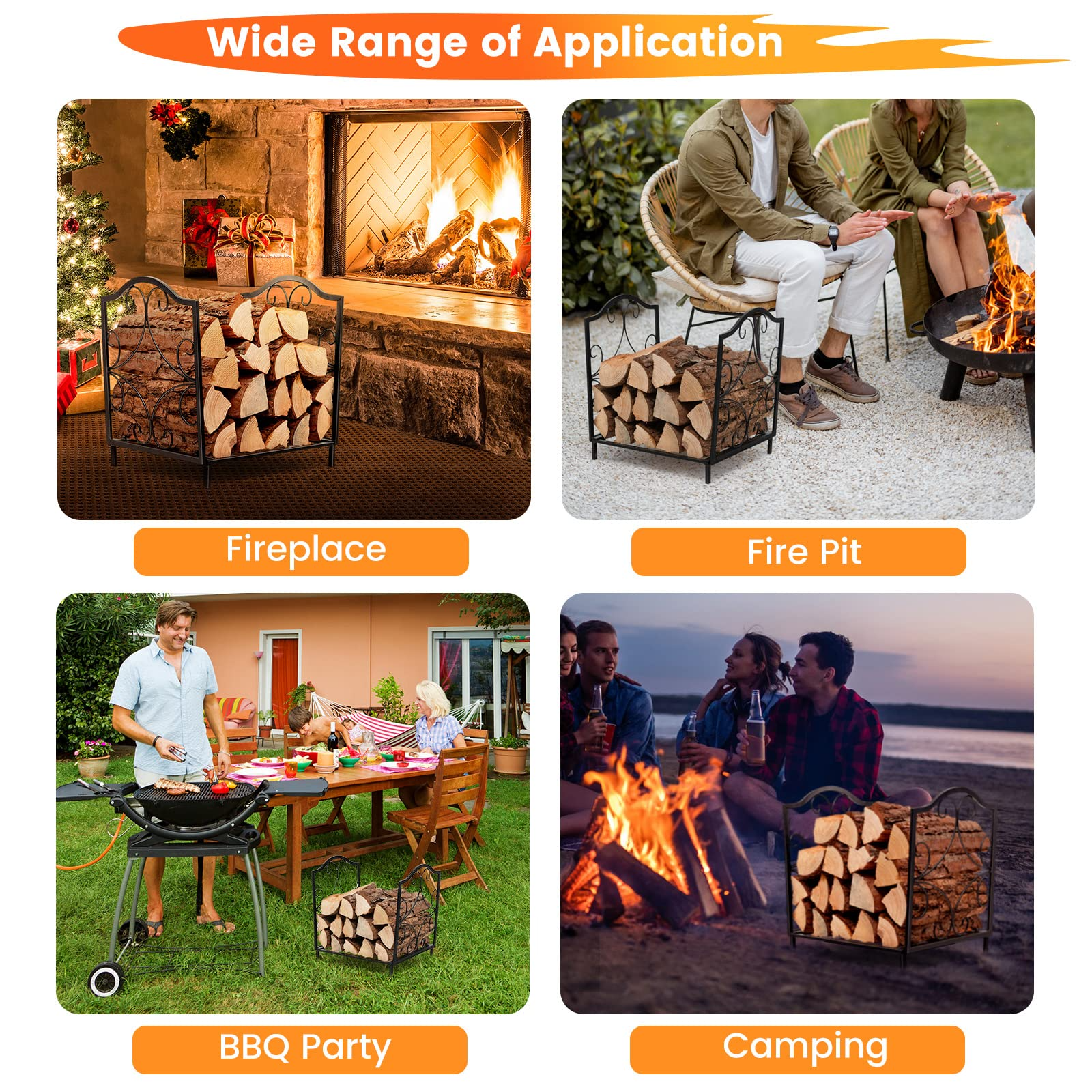 - Wide Range of Application: This heavy-duty steel log holder is designed for both indoor & outdoor use, including the living room, bedroom, backyard, patio, porch, deck, garden, and so on. You can place the firewood rack beside your fireplace, wood-burning stove or fire pit to store, stack, dry, or display firewood.