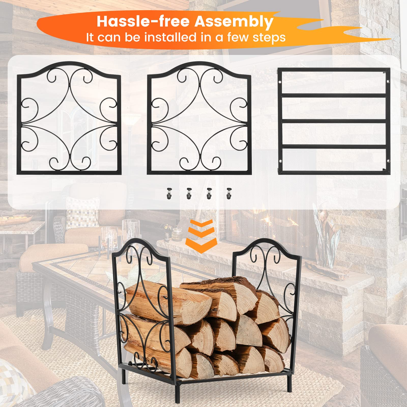- Hassle-free Assembly & Cleanup: Complete parts and all the necessary hardware required to assemble this firewood rack are included. With clear instructions, it can be installed in a few steps. What's more, the smooth surface is easy to keep clean and new, just wipe it with a damp cloth.