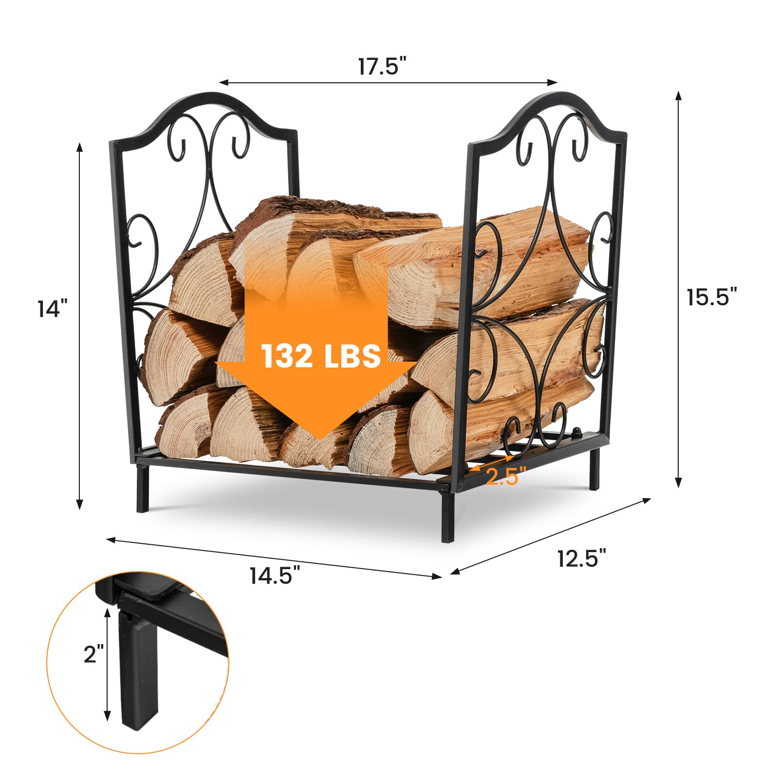 - Perfect Firewood Storage Solution: This 17.5" heavy-duty firewood log stand can hold up to 132 lbs of firewood, which is enough for a cold winter. The open-top design makes it easy to stack and take out the firewood. Besides, the raised supporting feet promote air circulation to keep logs away from dampness.