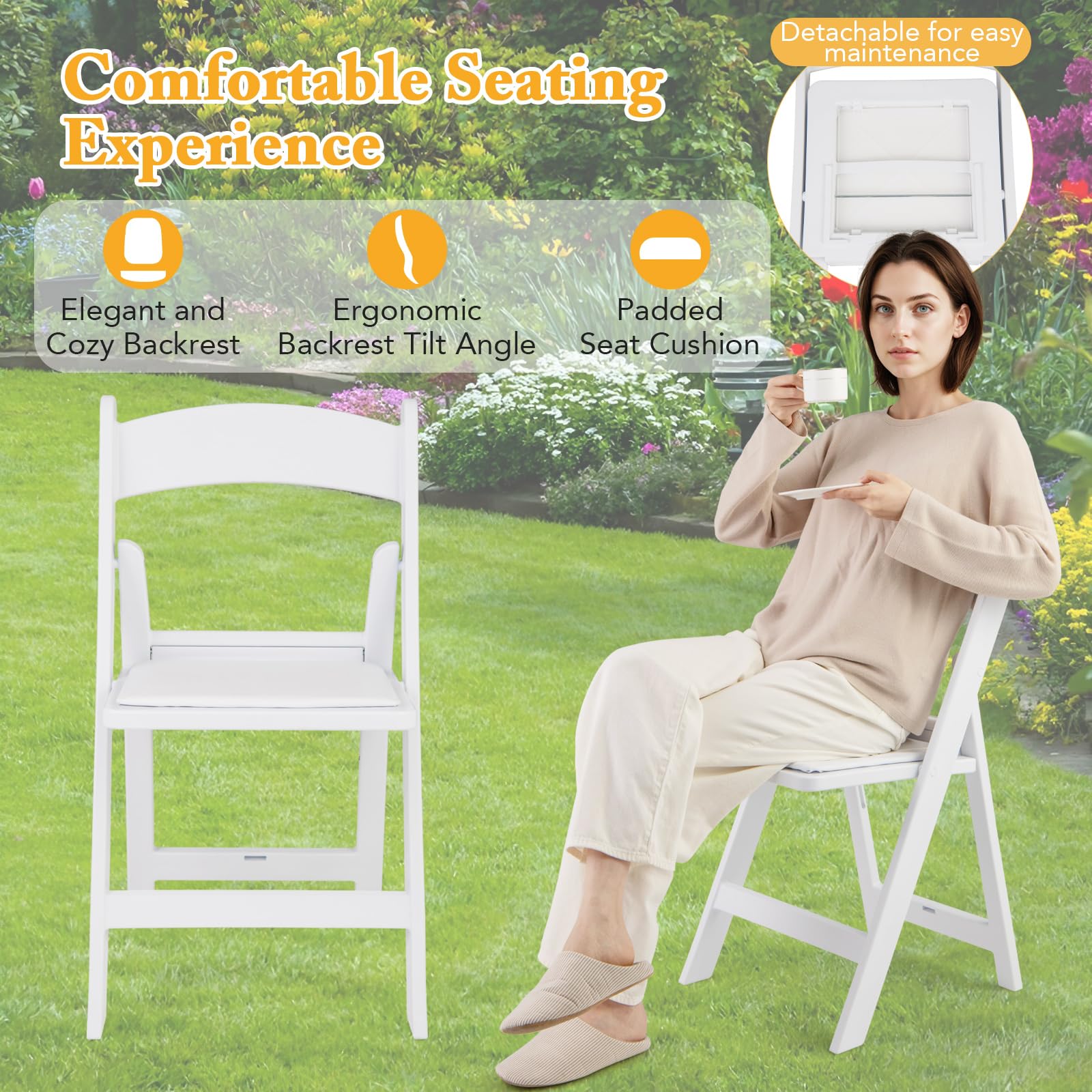 Tangkula Folding Chairs, Outdoor Foldable Patio Chairs with Padded Seats, All-Weather Resin Frame with 1100 LBS Static Load