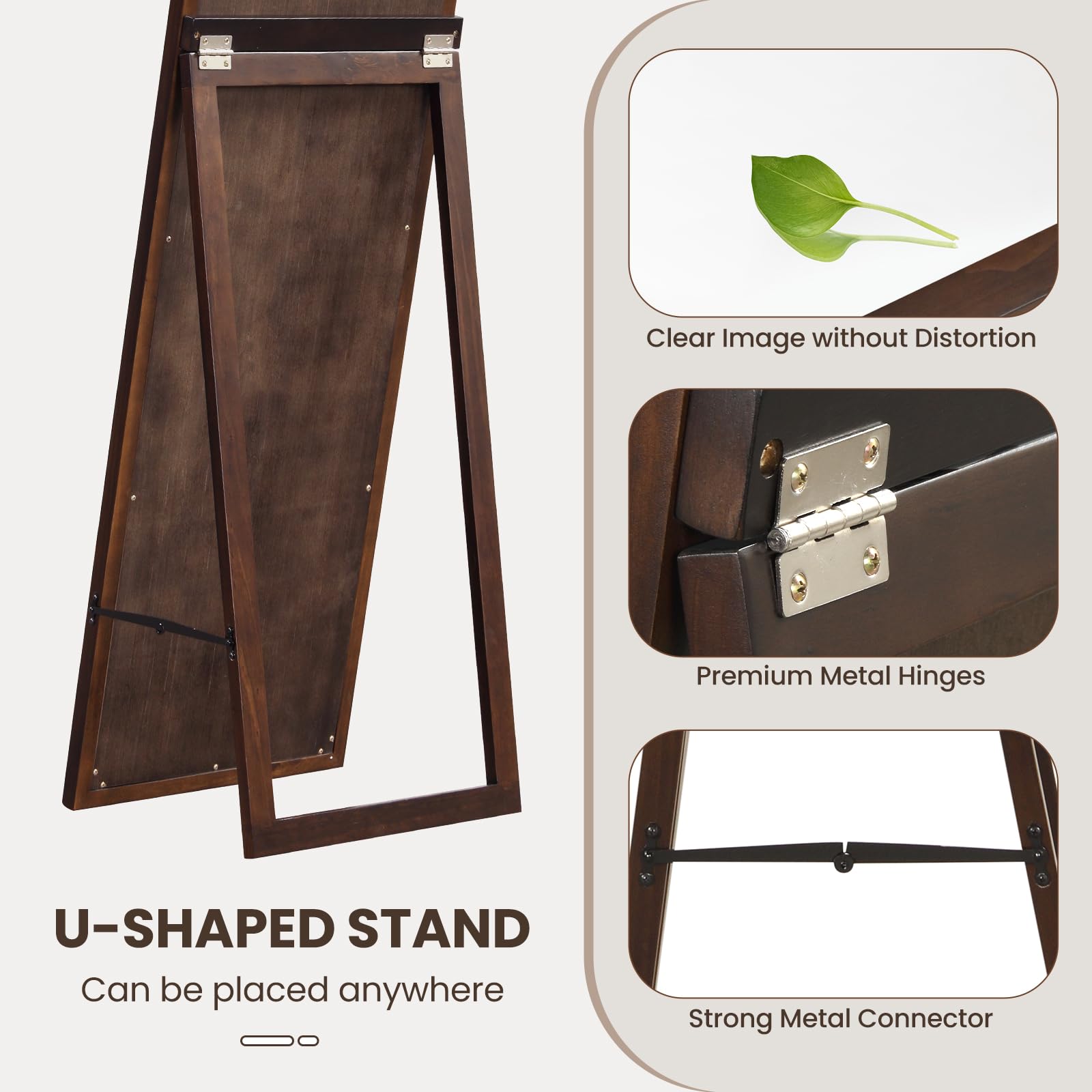 - 【Premium Quality】The mirror offers clear image without distortion, making it perfect for checking outfits, grooming, or adding depth to your space. The solid wood frame and stand ensure an extended lifespan and present a timeless and sophisticated look in any room.