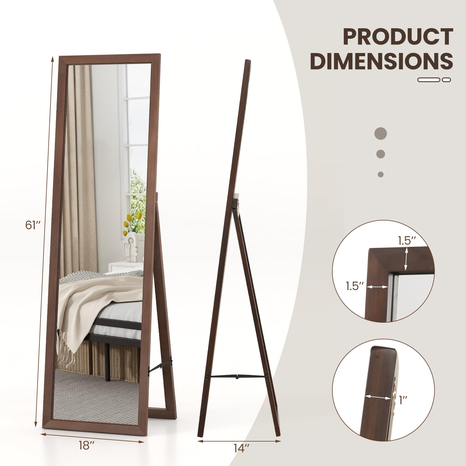 - 【Full-Length Mirror】Boasting a generous 61" x 18" size, this full-length mirror provides ample reflection space for outfit checks, grooming, and enhancing the look and feel of your living space.