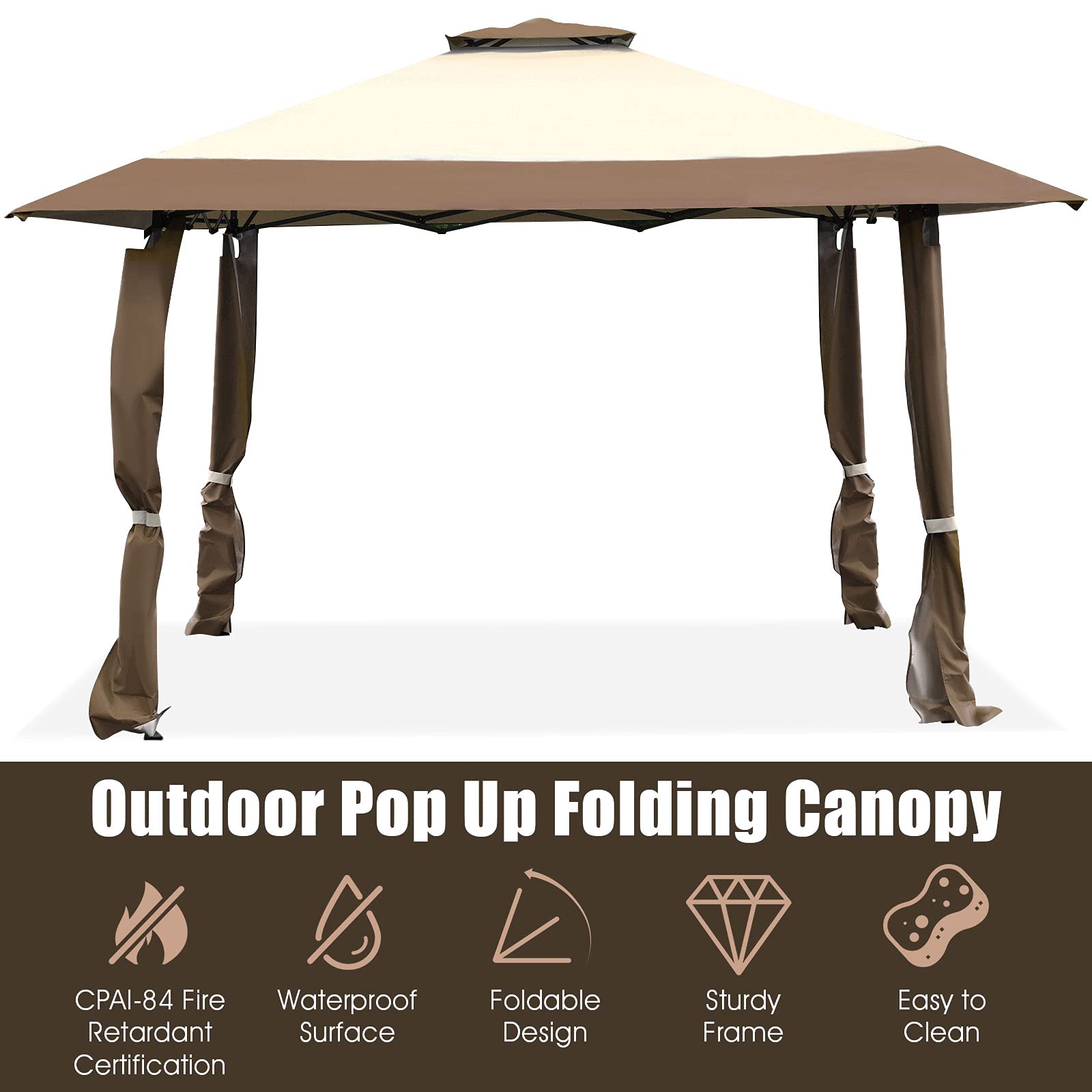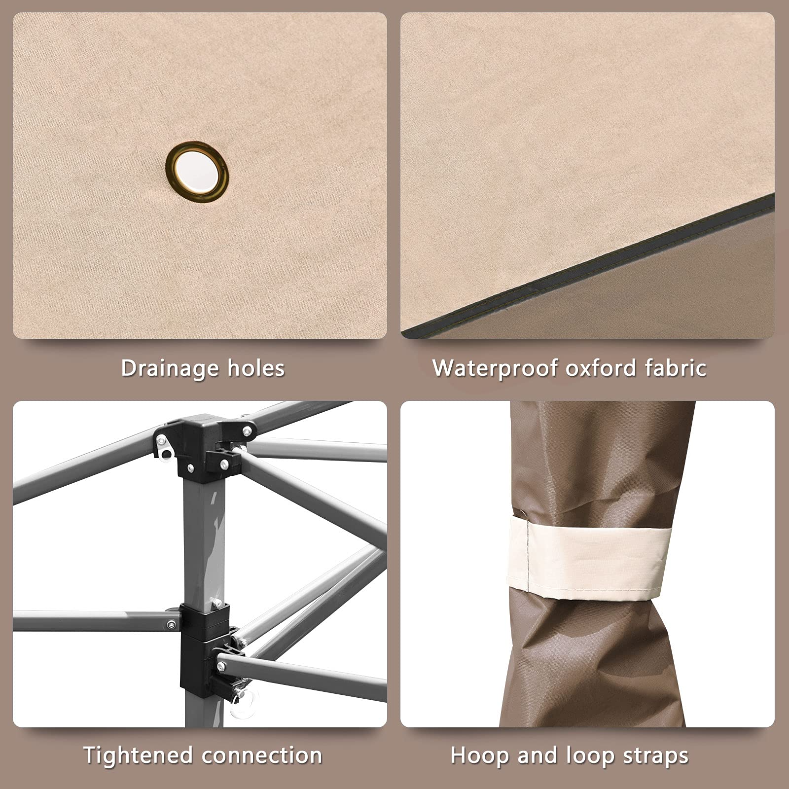 Enjoy the summer day and night with our brand new pop-up canopy tent which you can't miss, the garden gazebo is constructed with powder-coated steel and 210D silver-coated oxford fabric cover which perfectly protects you from rain and sunshine, and can be used for a long time. Double-tier roof design expends the height of the canopy, providing proper ventilation and airflow. it is your best idea for camping, picnics, outdoor sporting events, etc with a carry bag, You can easily transport it from one place to the next with the caster. Don't hesitate to buy one!