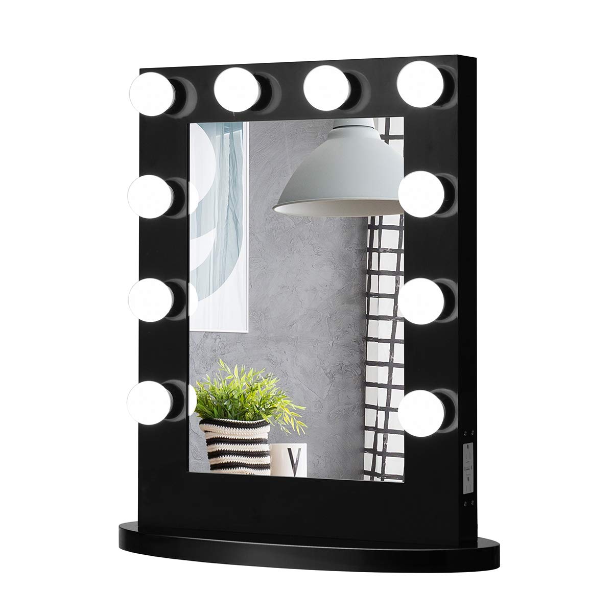 • Vanity Mirror Size: 1 x Black Hollywood makeup lighted mirror, 12 x 110V dimmable LED bulb. Mirror size ( 19.5" x 13.5" x 2.5" ) and overall size ( 23" x 10" x 27")