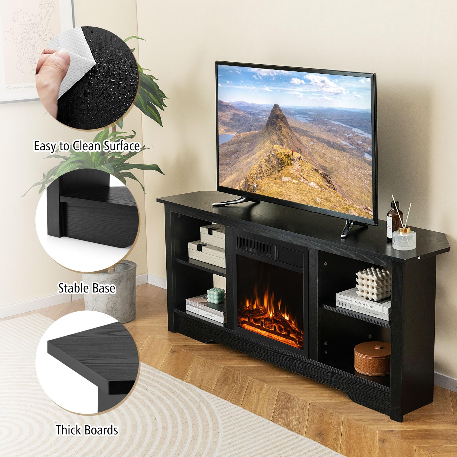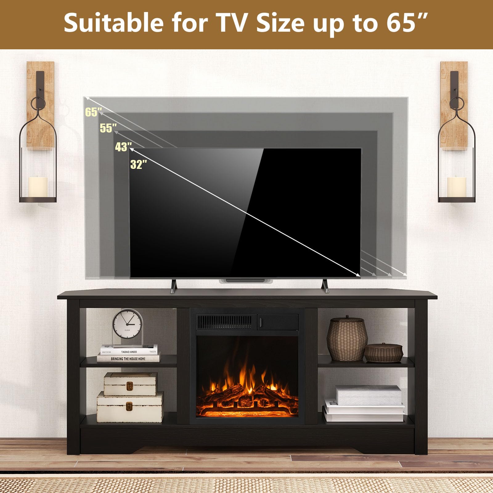 Our outstanding 2-in-1 TV cabinet is perfect for any style of living room! Boasting an impressive array of side storage shelves, it offers ample storage space for all your audio and video equipment. What’s more, the shelves are 3-position adjustable (2.5” for each level). Additionally, its generous tabletop cater perfectly to TVs up to 65”. More, the 18” electric fireplace heater offers a cozy atmosphere with flickering flames and adjustable heat settings. With a heat output of 5100BTU, it covers up to a 400 sq ft heating range. The TV console table is constructed from premium thick boards that guarantee exceptional load-bearing capacity and unmatched longevity.