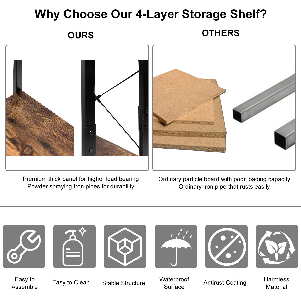 Would you like to have a storage rack to make your home more neat and organized? Our spacious 4-tier bookshelf can be the ideal choice. Our sturdy ladder shelf is made of solid metal and durable particle board. It's very stable because of the X-type structure design, so that you don't have to worry about the problem of falling shelves causing injuries to children. The 4 feet with pads will keep the floor from scratching as well. The height between shelves is 13” and each shelf can hold up to 22 pounds of weight. Our 4 tiers ladder shelf can be used as a beautiful bookshelf to help you organize files and books, it also adds décor to you home. The shelf can also be positioned in the balcony and used as a flower rack. So what are you waiting for? Please choose our 4 tier ladder shelf to display your favorite books on your living area.