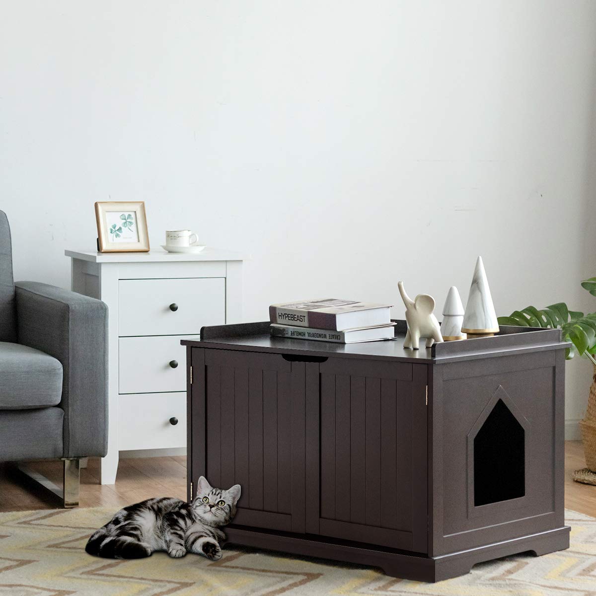 - Wide Top with Apron Design for Cat Bed: Constructed with apron rim, this hidden litter box provides wide countertop storage space for you to place magazines, potted plants, lamps, drinking cups and will prevent your precious items from dropping out for enhanced safety. Most importantly, placing a cat bed on the countertop is also a good option.