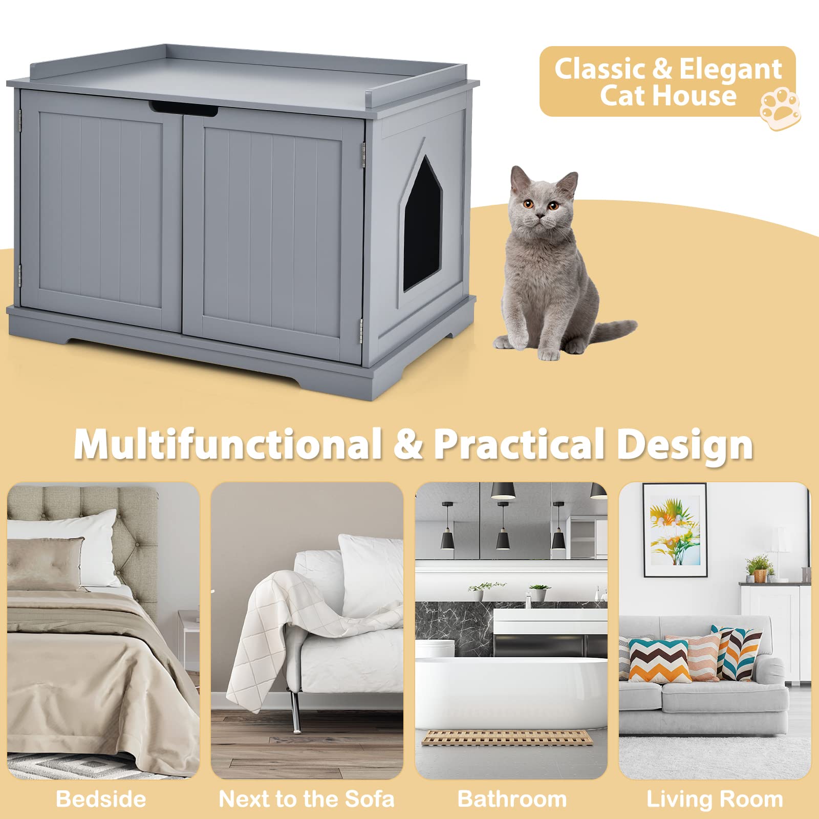 - Entrance Direction Optional: This multi-purpose cat house is not just a litter box enclosure, but can also be used as a bedside table or side table. The entrance can be installed on the left or right side as desired. An installation video is available to facilitate your installation.