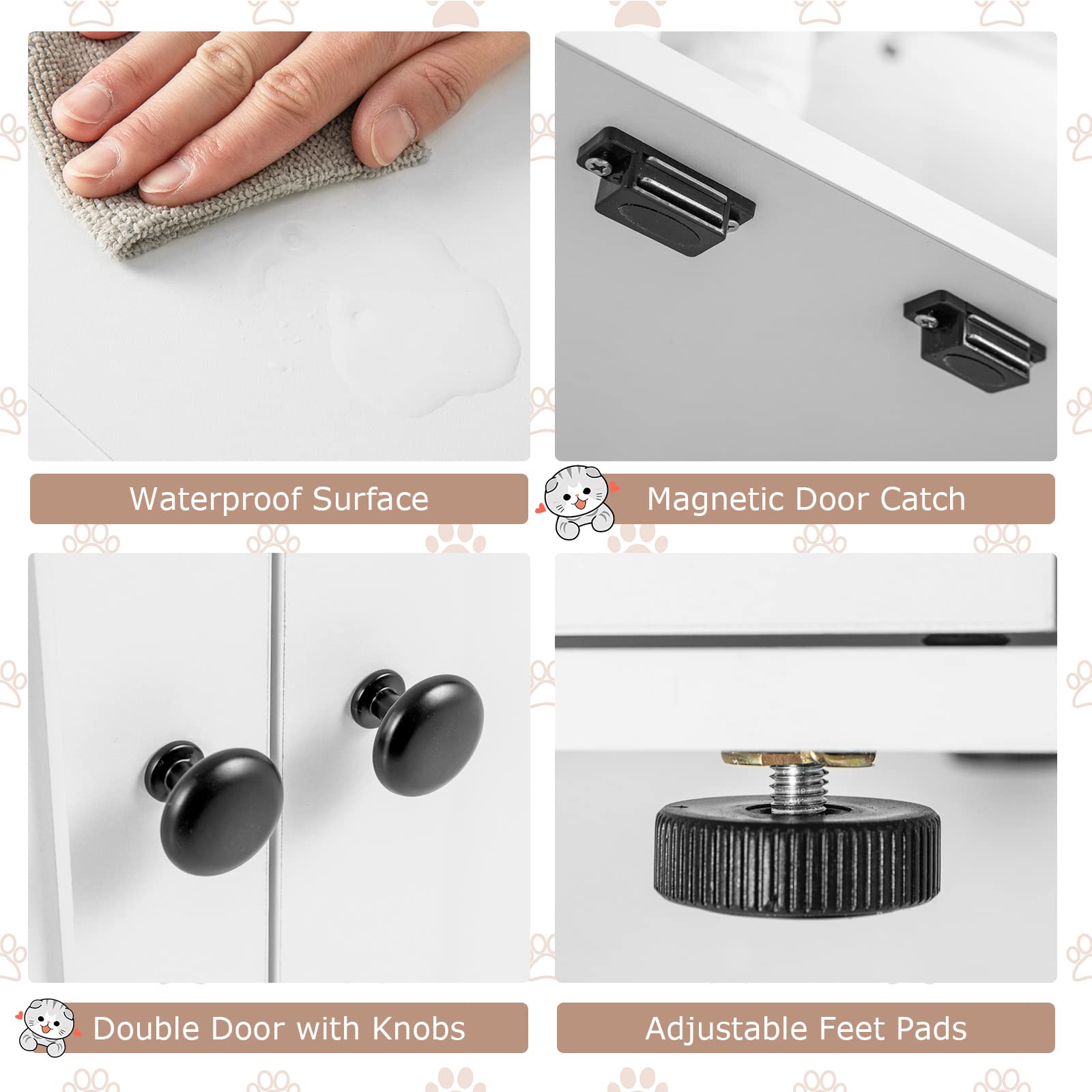 - Large & Functional Cabinet: The bottom cabinet includes a cat litter box enclosure, which offers private potty time for your cats. And a compartment is designed for you to store cat food, toys, or other supplies. Moreover, there are two side entries to provide easy access for cats.
