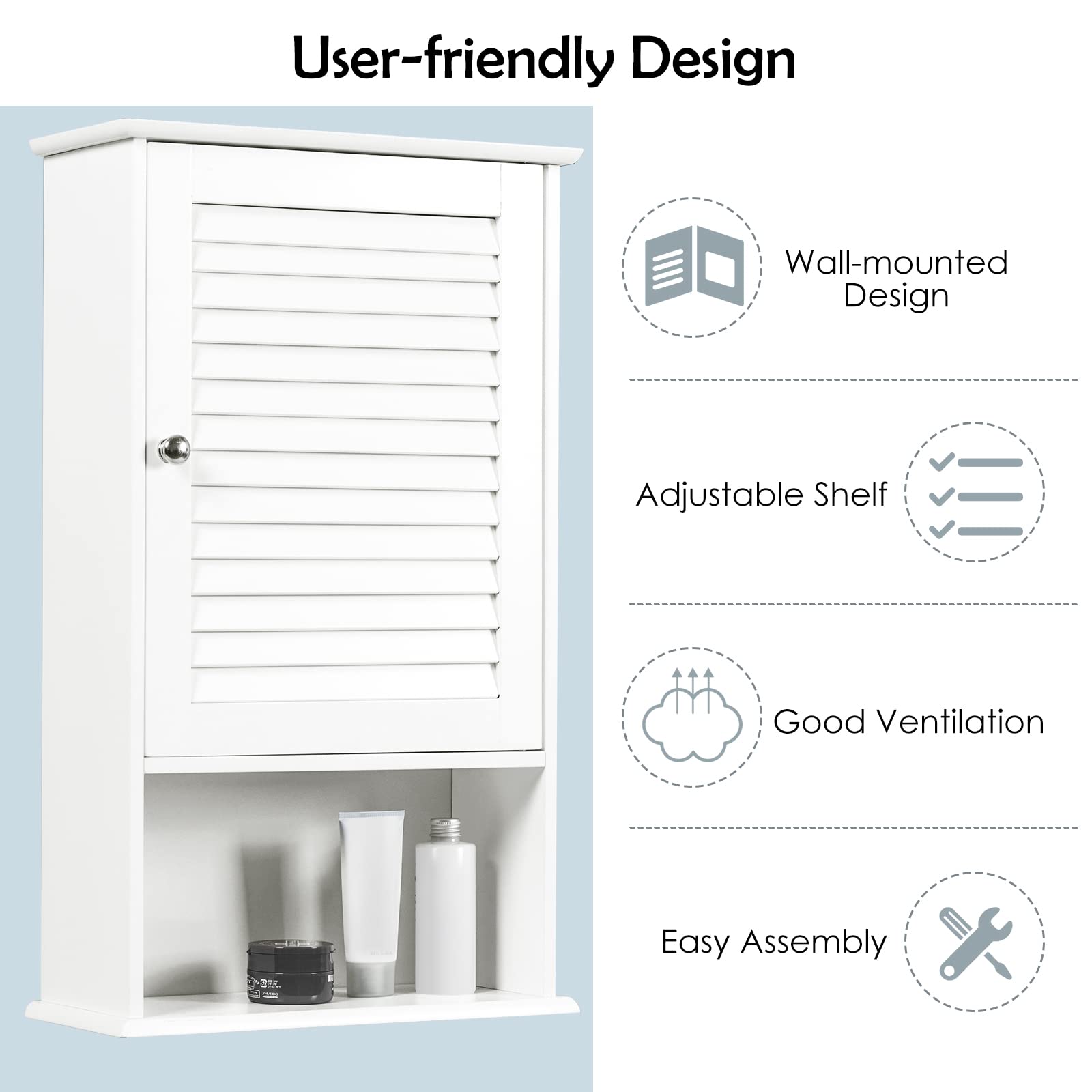 - Moisture-Proof Design: The tangkula medicine wall cabinet is using a painted process that is waterproof and moisture-resistant. Suitable for humid environments, such as bathrooms or toilets. And shuttered door design not only keeps it clean and organized but also promotes air circulation. It is an ideal option for you.
