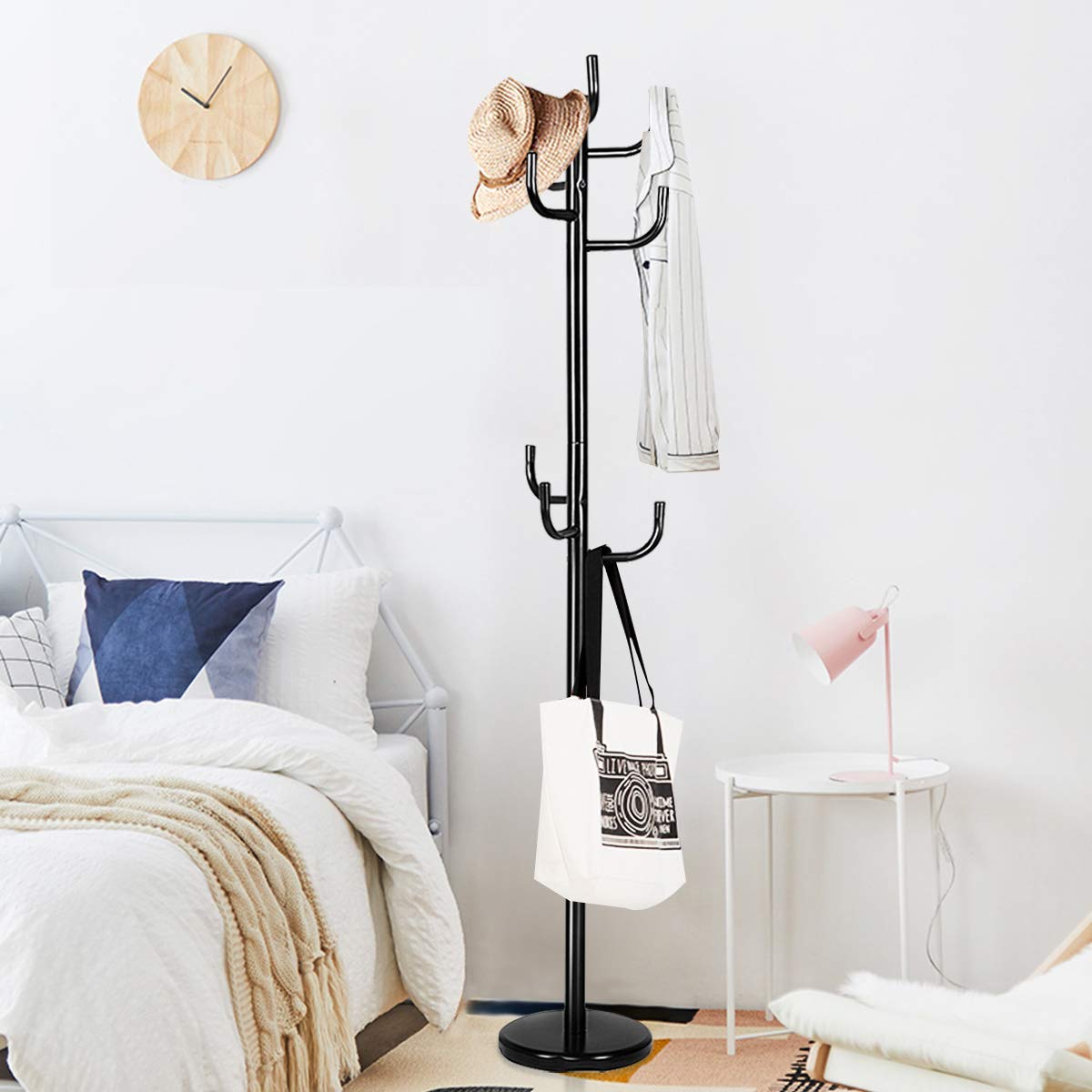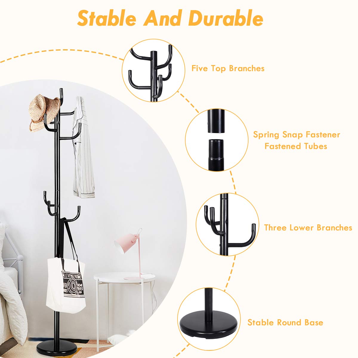 1: Unique & Beautiful: Tangkula coat rack freestanding is a perfect solution for your home. This coat rack has a unique style, the overall design of the black shows the fashion style, and the design of the irregular tree shapes is unique. It is perfect to add a touch of style to your home entranceway. It is as beautiful as useful.