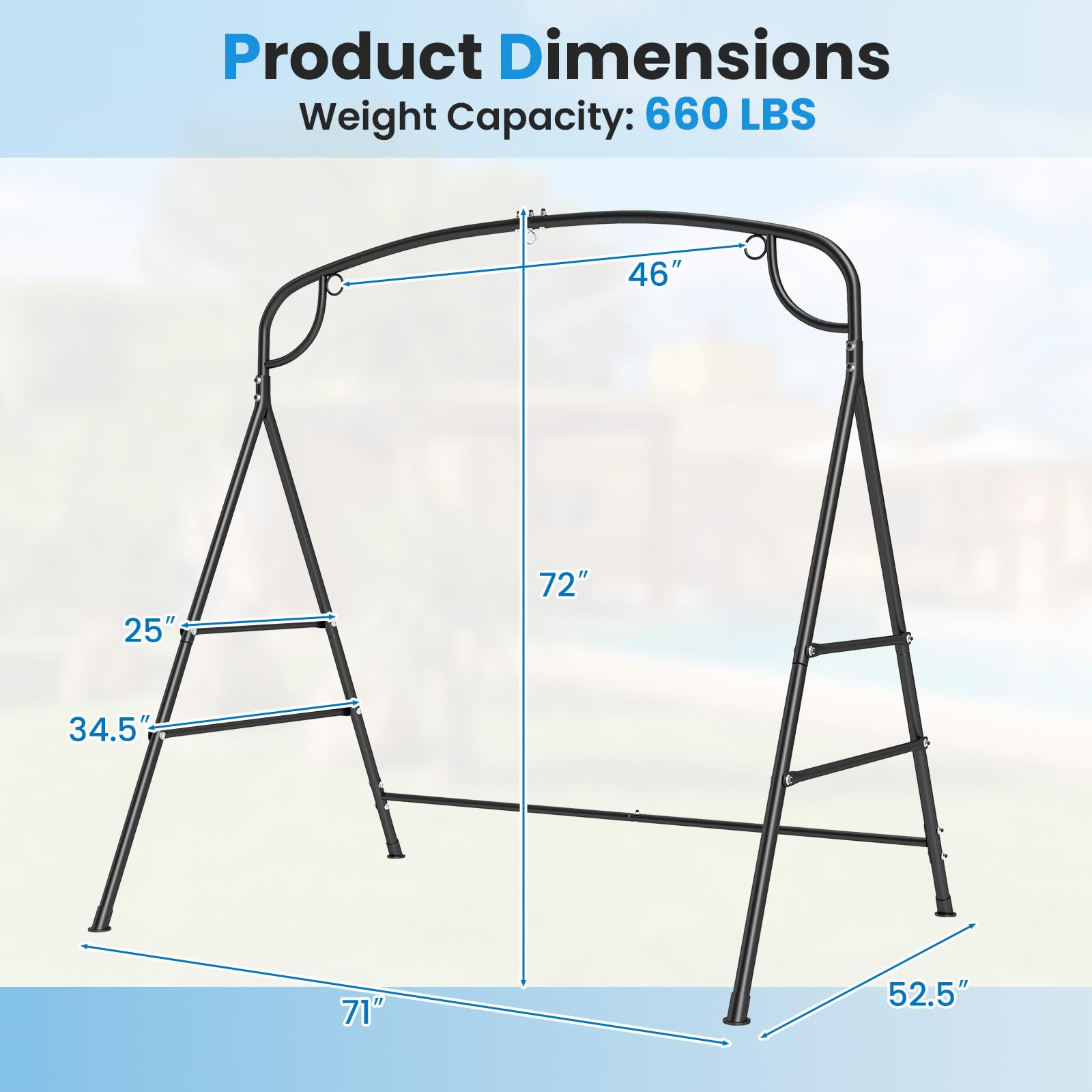 • Stable Metal Construction: Constructed from robust metal, this metal swing frame is built to support up to 660 lbs. Its heavy-duty nature promises long-lasting durability, making it a reliable addition to your outdoor space.