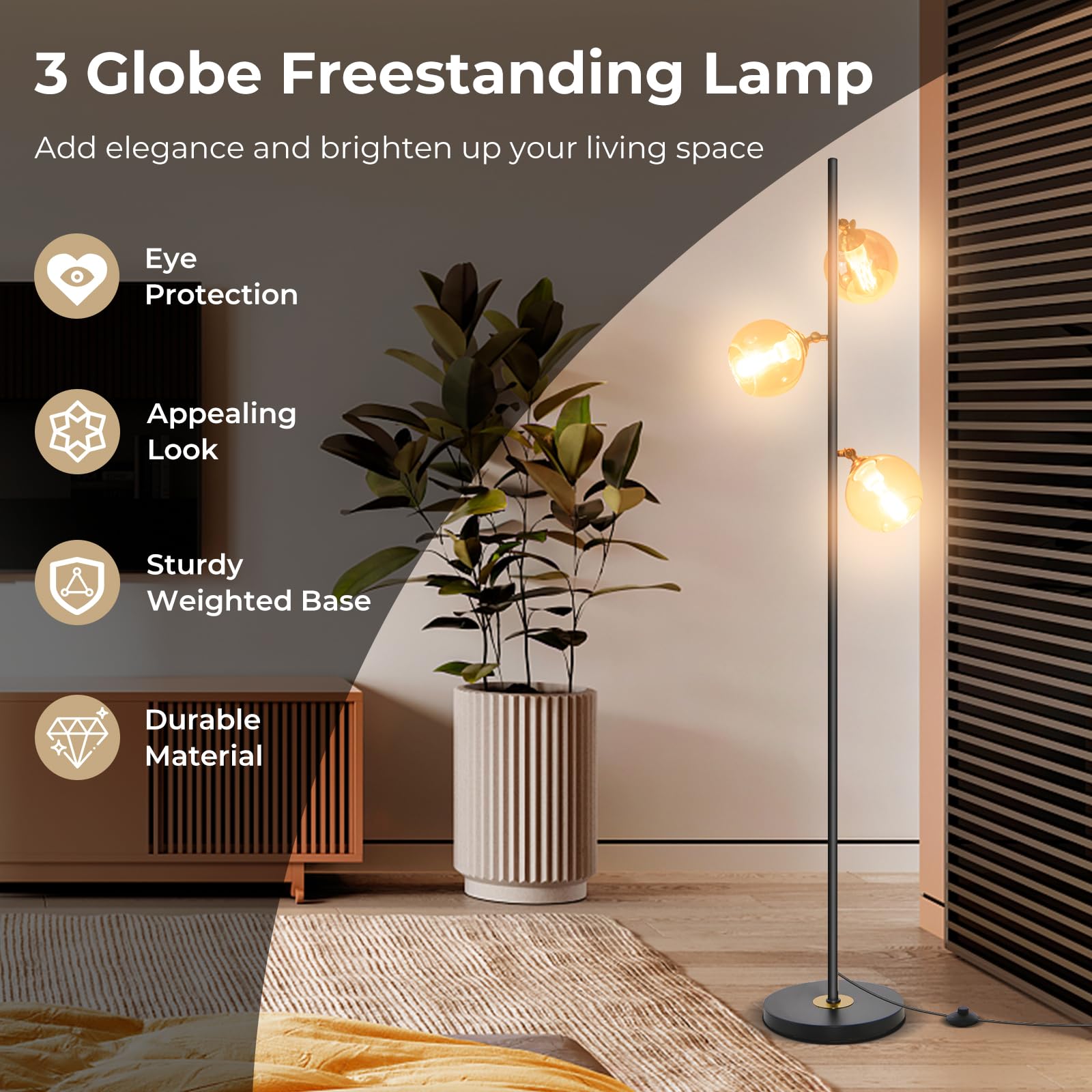 - [Premium Floor Lamp]: The 3-globe freestanding lamp is well designed with well-painted metal pipes and weighted lamp base, which offer strong support and ensure high stability. Moreover, the safe plug makes the lamp more reliable to use.