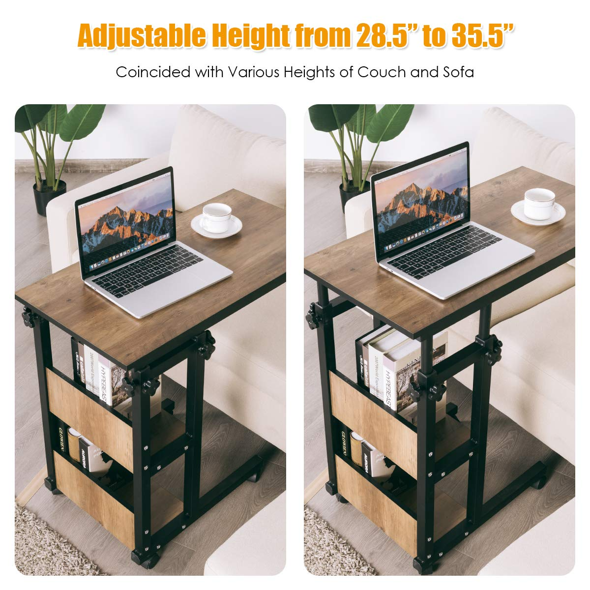 - C-Shape End Table with Adjustable Height: Designed in a C-shape structure with heavy-duty metal supporting, this side table can be adjusted from 28.5'' to 35.5'' perfectly coincided with various heights of couches and sofas at the market and will be the eye-catching trim to fit into any corner of your home with its combination of elegance and practicality.