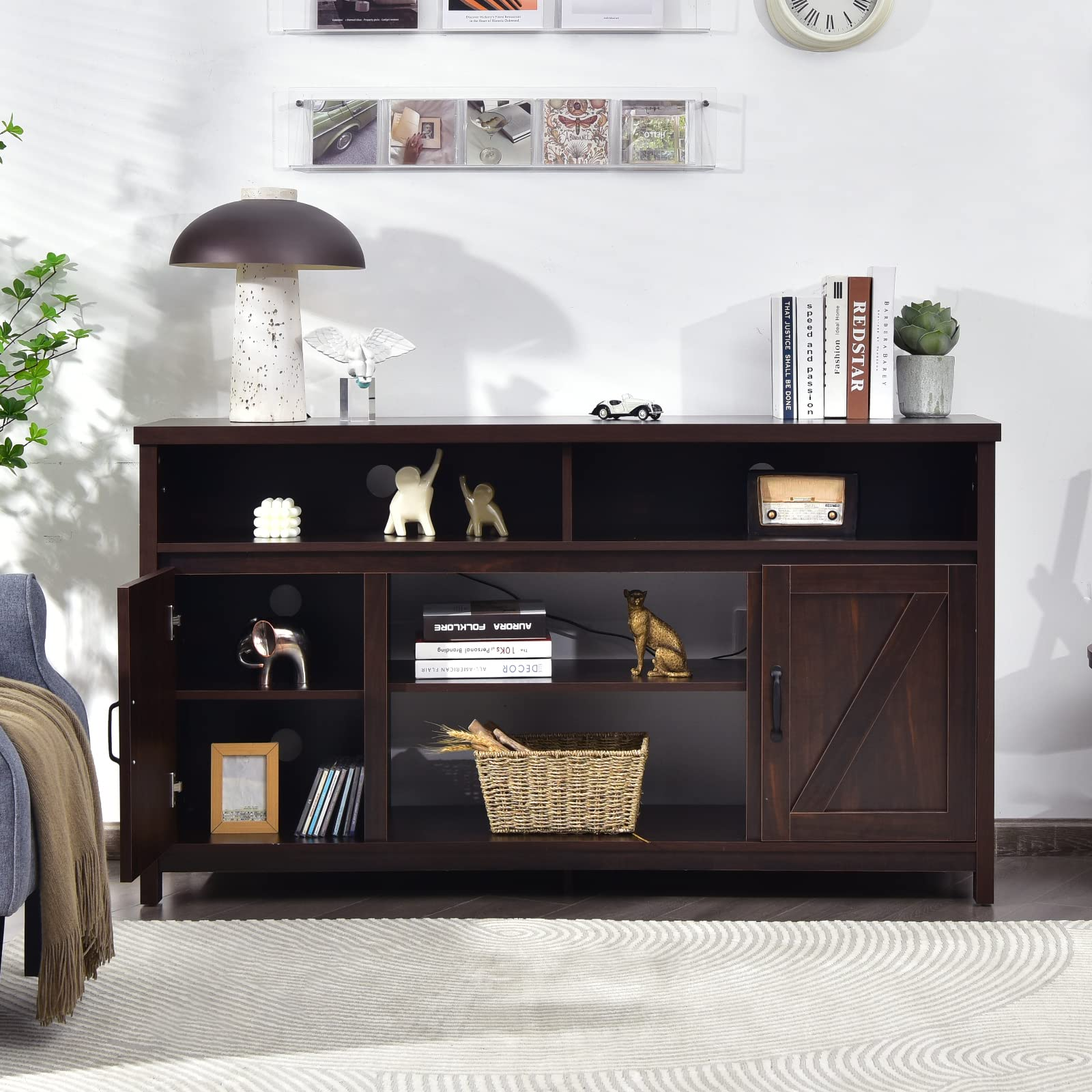 - Sturdy Construction & Large Capacity: Premium material with reinforced legs ensures excellent stability and durability. The spacious tabletop can hold a 65" TV. 4 open compartments and shelves are ideal for placing DVD players and other media devices. Besides, 2 side cabinets with doors provide extra storage space.