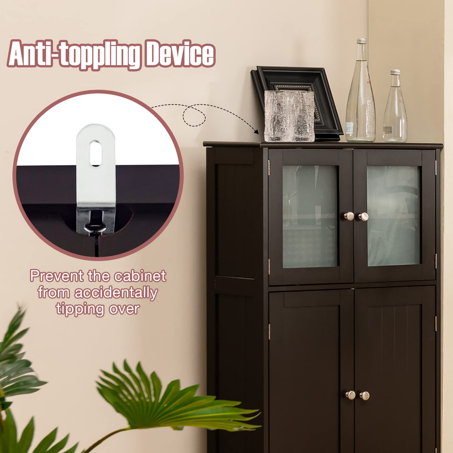• Safety Design & Thoughtful Details: The back of this bathroom storage cabinet is equipped with anti-toppling fittings to avoid accidentally falling and hurting you and your family. The exquisite round metal handles and magnetic door holder allow you to open and close the cabinet doors conveniently.