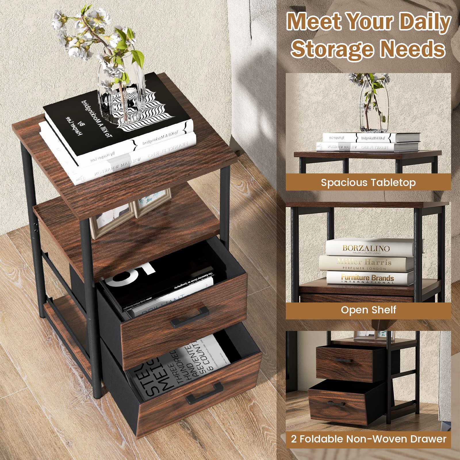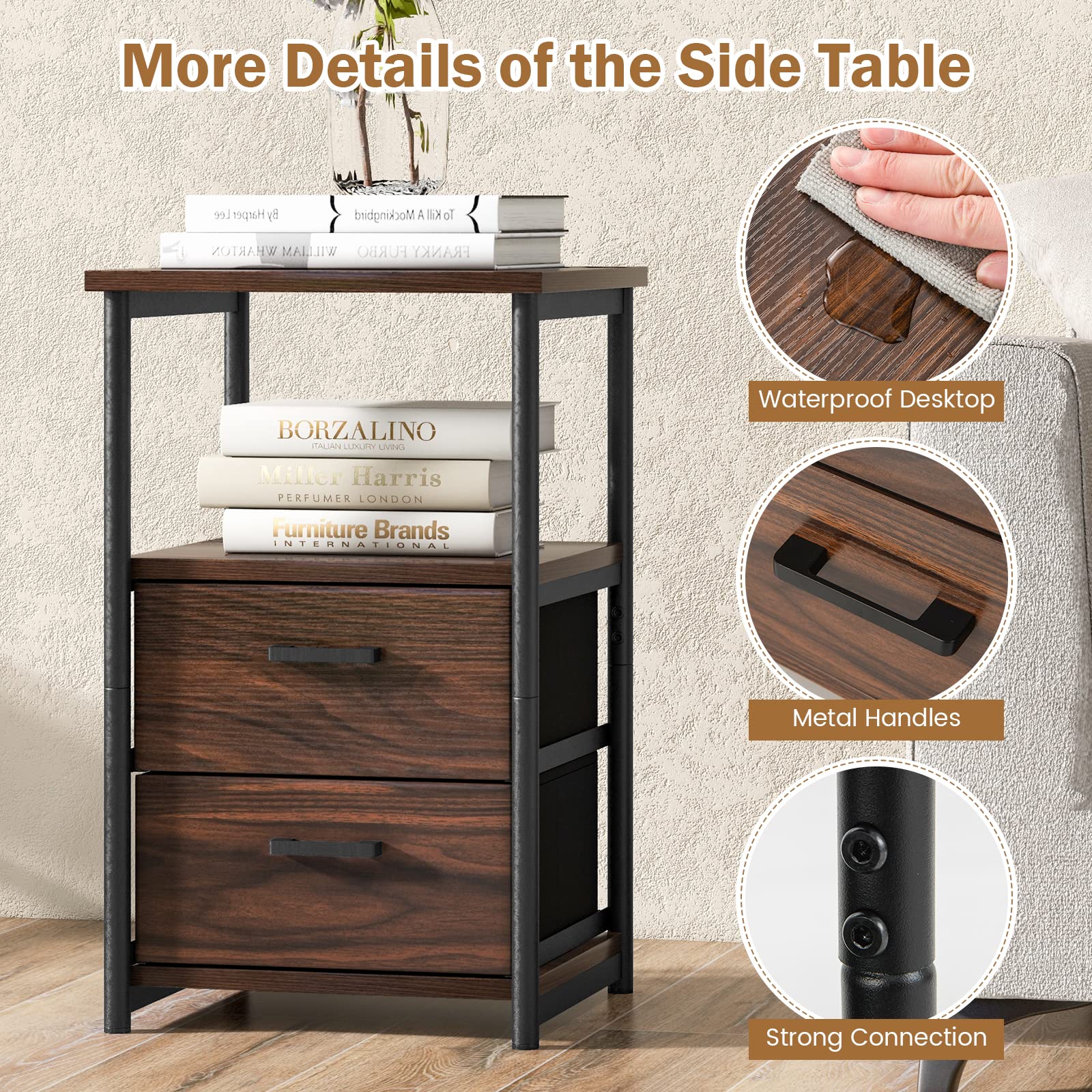 - Sufficient Storage Space: The end table features a 13.5" x 12" tabletop where you can put your usual coffee mug, photo frames, or glasses. In addition, it also features an additional open storage shelf and 2 storage drawers, allowing you to easily store your books, magazines, remote control, small toys, etc.