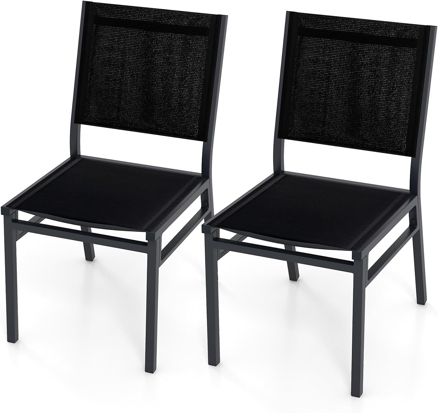 Crafted with robust aluminum frame, these chairs are rustproof and lightweight, making them easy to move and ideal for any outdoor or indoor setting. The premium and quick-drying seat fabric is breathable for hot days, which is also resistant to fading. The ergonomic backrest supports the natural curve of your back, allowing for hours of relaxation. Perfect for your backyard, balcony or dining room, the chair is designed to offer both style and comfort for every occasion. Elevate your living space with this effortlessly stylish and functional seating option.