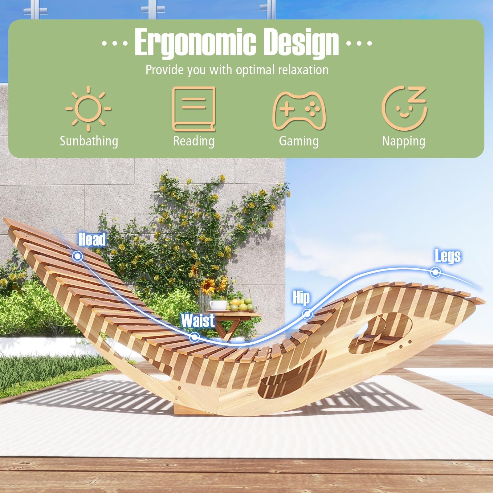 - Comfy Seating Experience: Ergonomically crafted to provide optimal support to your body, this acacia wood rocking sunbed features a spacious seating area. The slatted design aids in enhancing air circulation and preventing water accumulation.