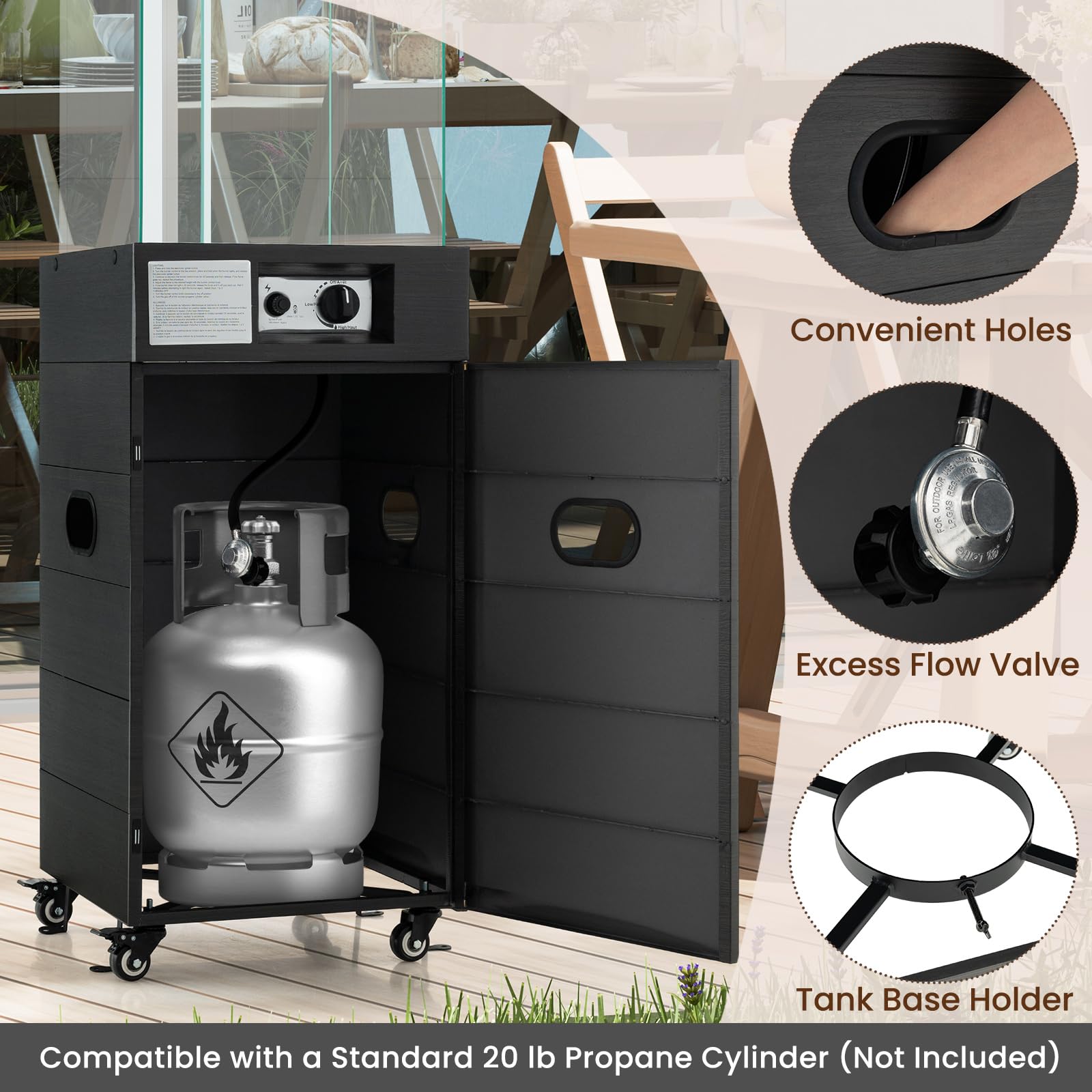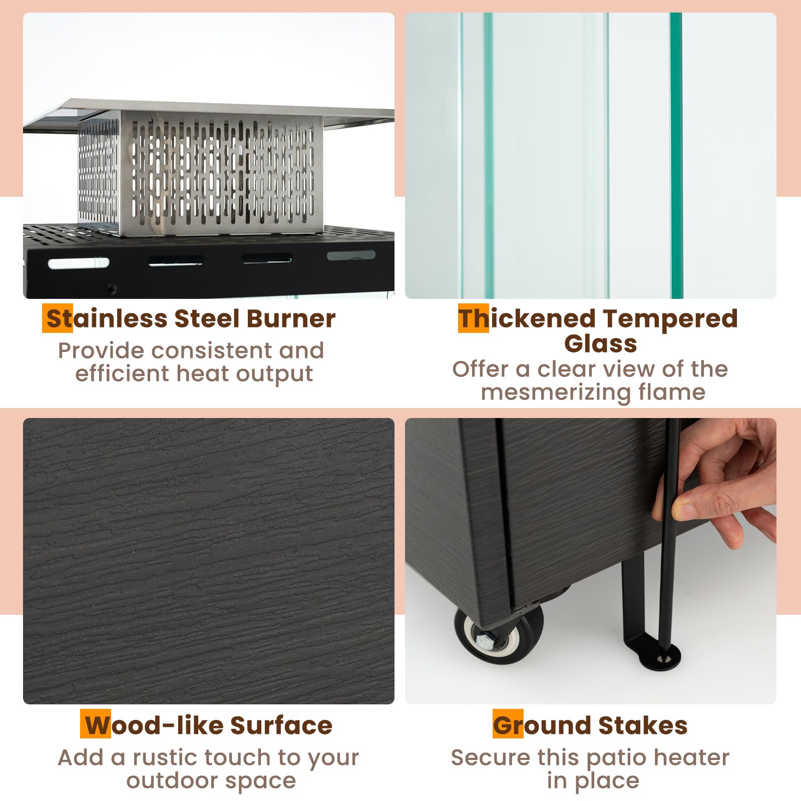 - High-quality Materials: Boasting a high-strength tempered glass tube, this outdoor heater allows you to enjoy the mesmerizing dance of the flame. Plus, this outside heater's durability is enhanced with a premium stainless steel burner and comes with a 300D polyester oxford cloth cover for all-round protection.