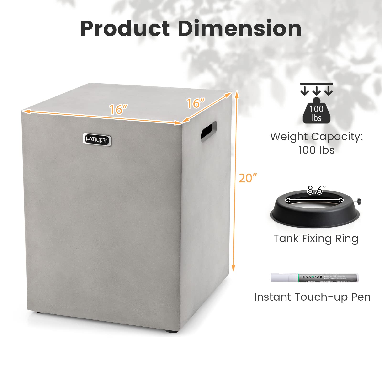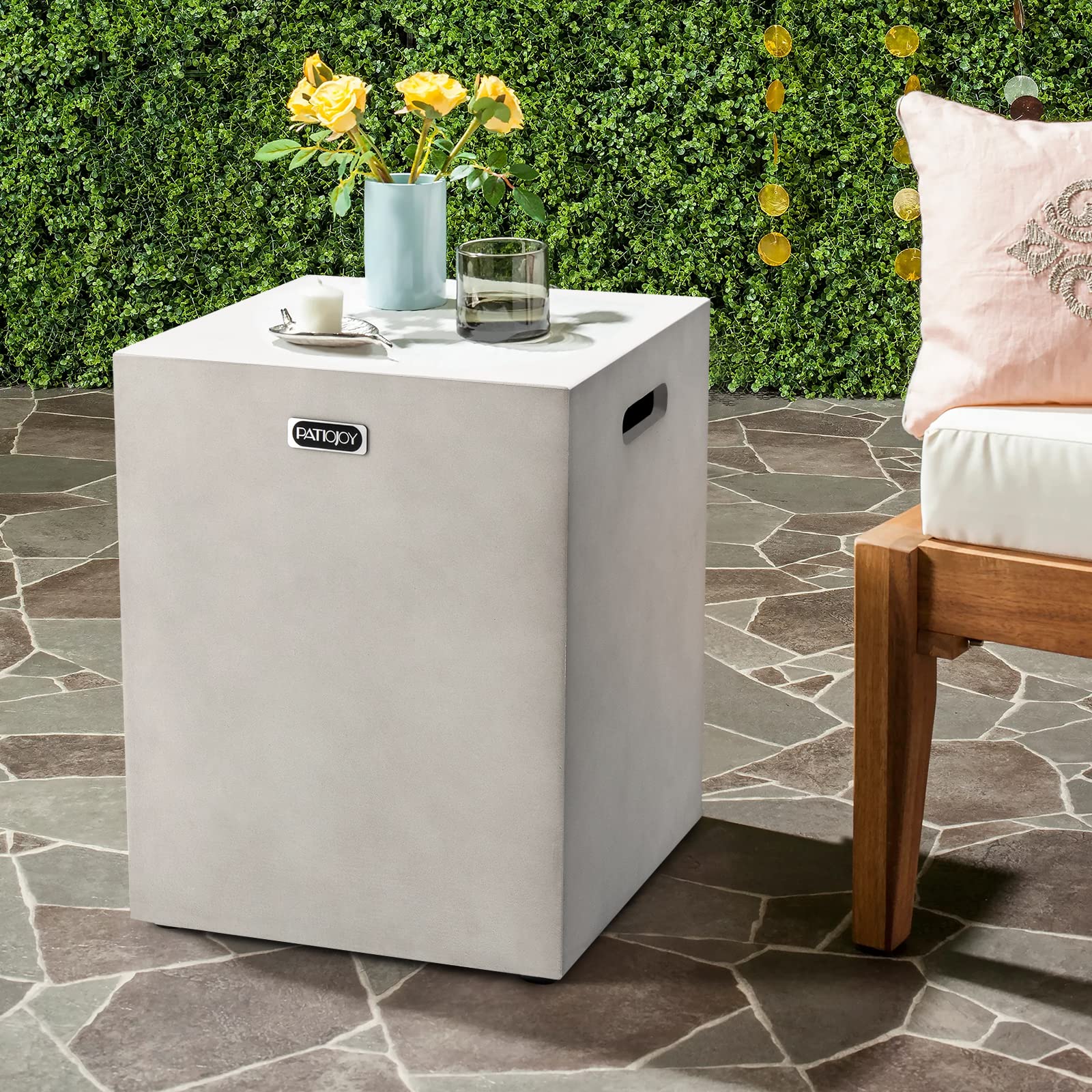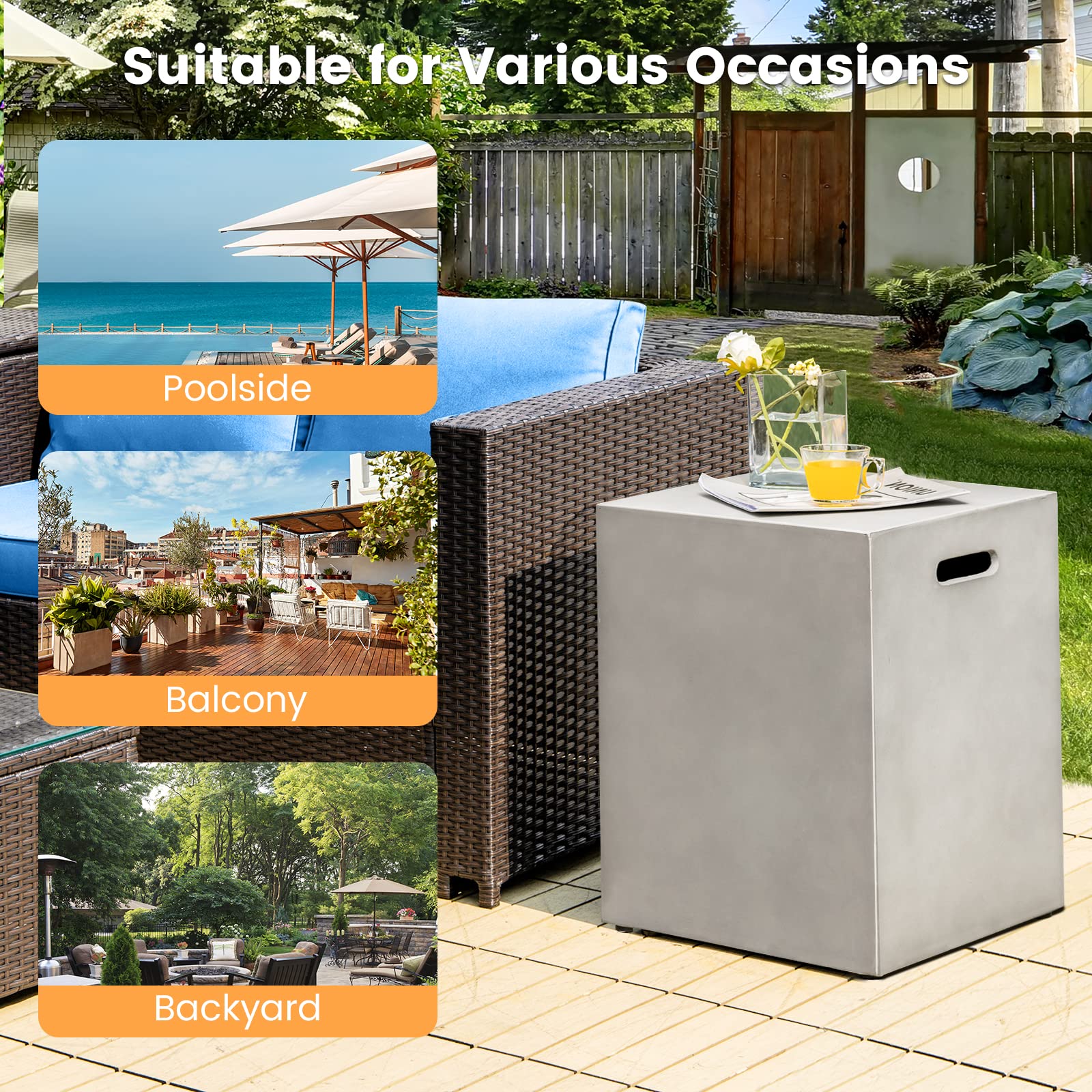 This propane tank hideaway table with dual functions combines both aesthetics and practicability for your daily use! It can not only be used as a propane tank cover, but also as an outdoor side table. With convenient side handles, you can move it anywhere you want, making it a great addition to the garden, courtyard, patio, etc. Moreover, the high quality materials are durable and sturdy enough to stand the test of time. And the adjustable foot pads allow you to use the tank cover on uneven ground. This outdoor propane tank table can hold a standard 20 lbs propane tank (not included). No assembly required.