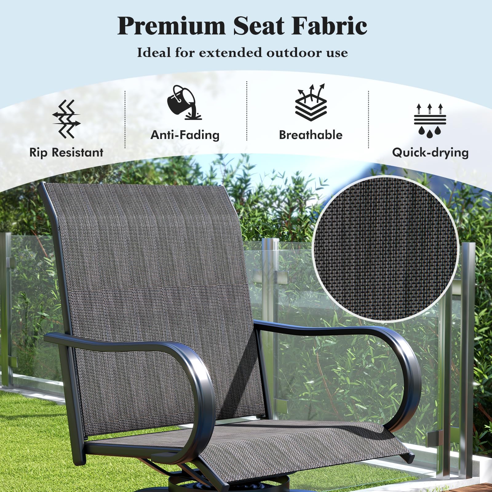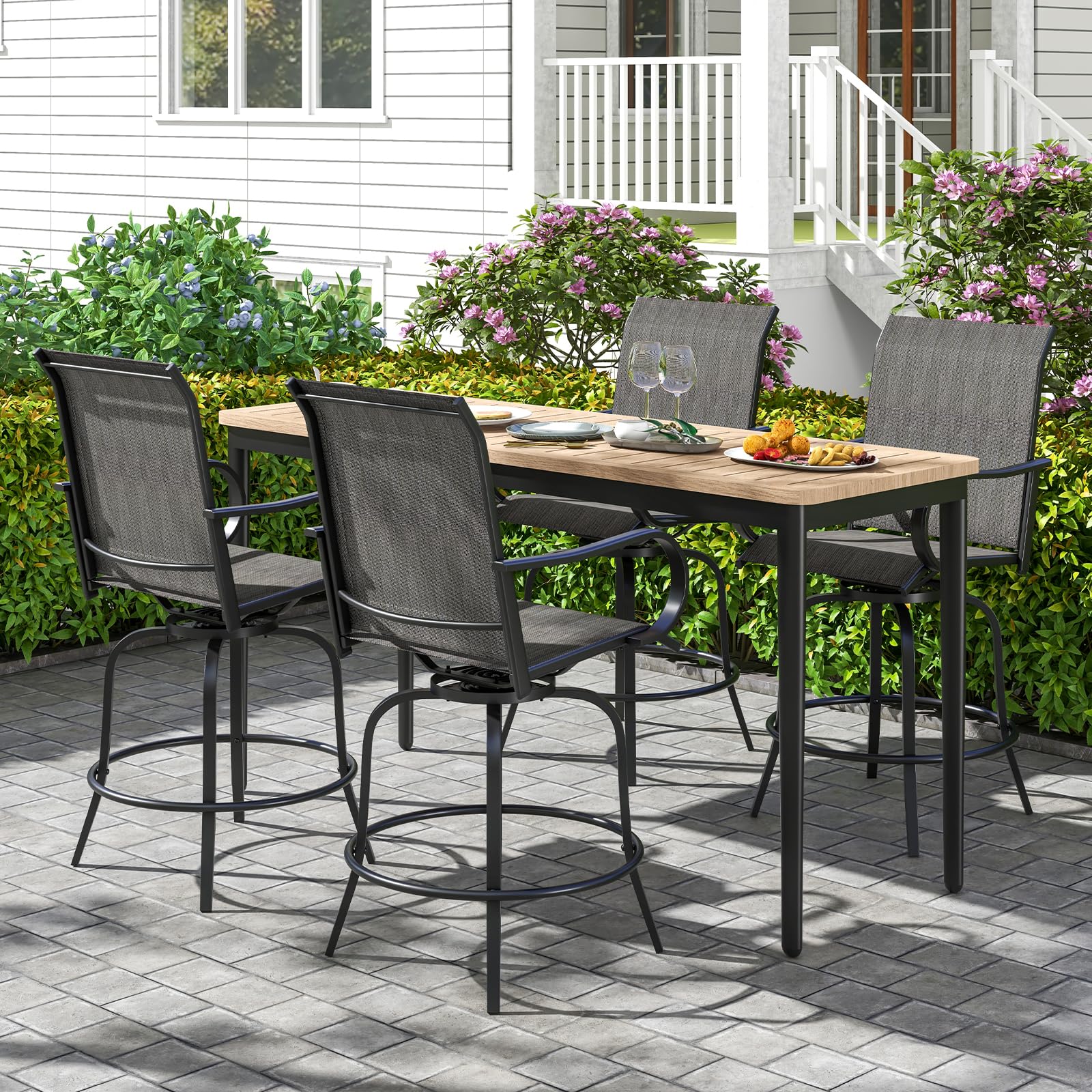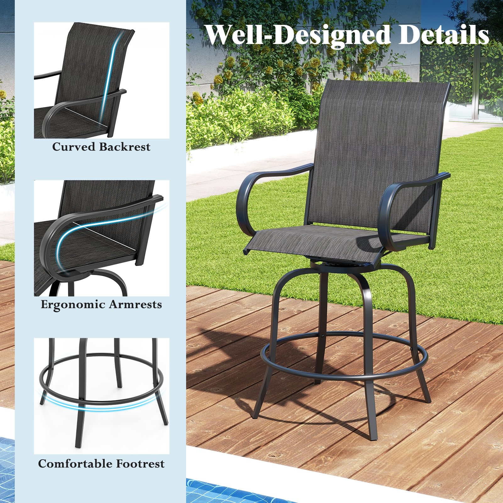 - 360° Smooth Swiveling: Each patio swivel bar stool is equipped with a premium swivel plate, offering a full 360° rotation. Therefore, you can relax with more comfort and convenience, engaging effortlessly in conversations in any direction.