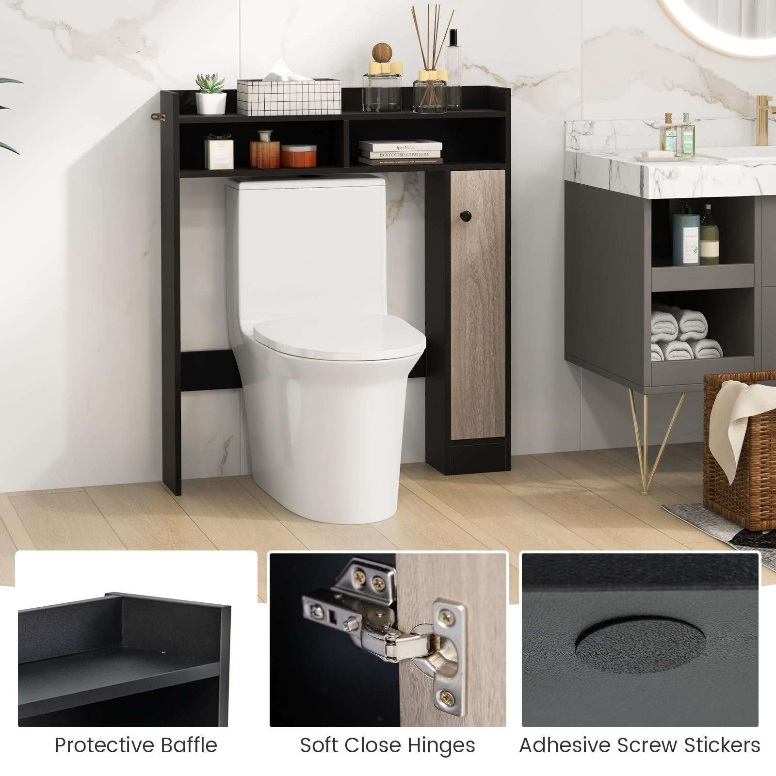 • [Classified Storage Space]: This over-the-toilet cabinet has 1 spacious top shelf, 1 enclosed cabinet with 2 active shelves and 2 open compartments, keeping your towels, toiletries or shampoos well organized. Plus, it can also be a nice place to place your ornaments or potted plants.