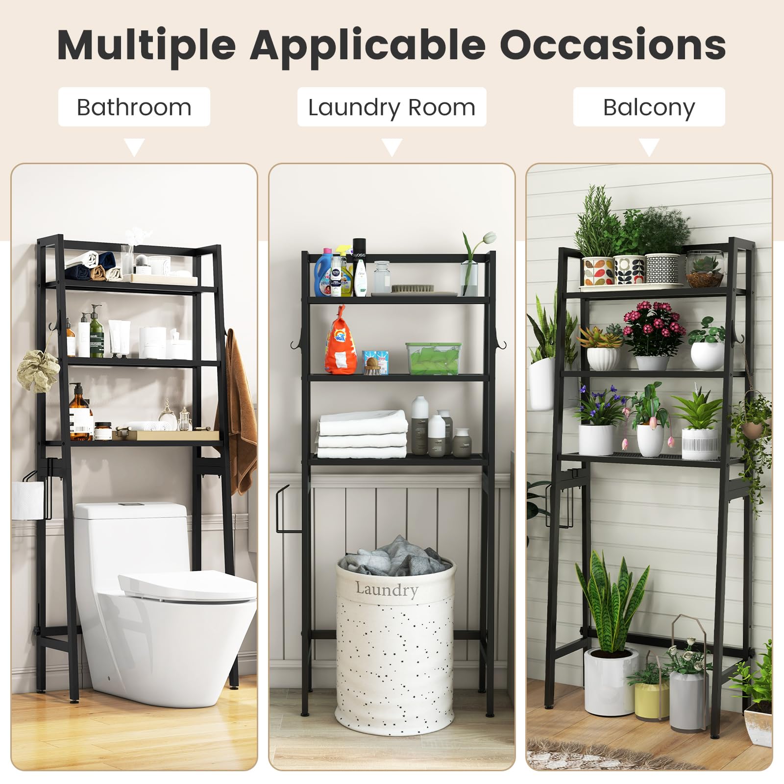 - Multiple Applicable Occasions: This freestanding above toilet shelf is not only a bathroom storage rack but also a 3-tier storage shelf in your living room, kitchen, laundry room and more, combining both functionality and classic outlook. You can also use it as a plant shelf on the balcony.
