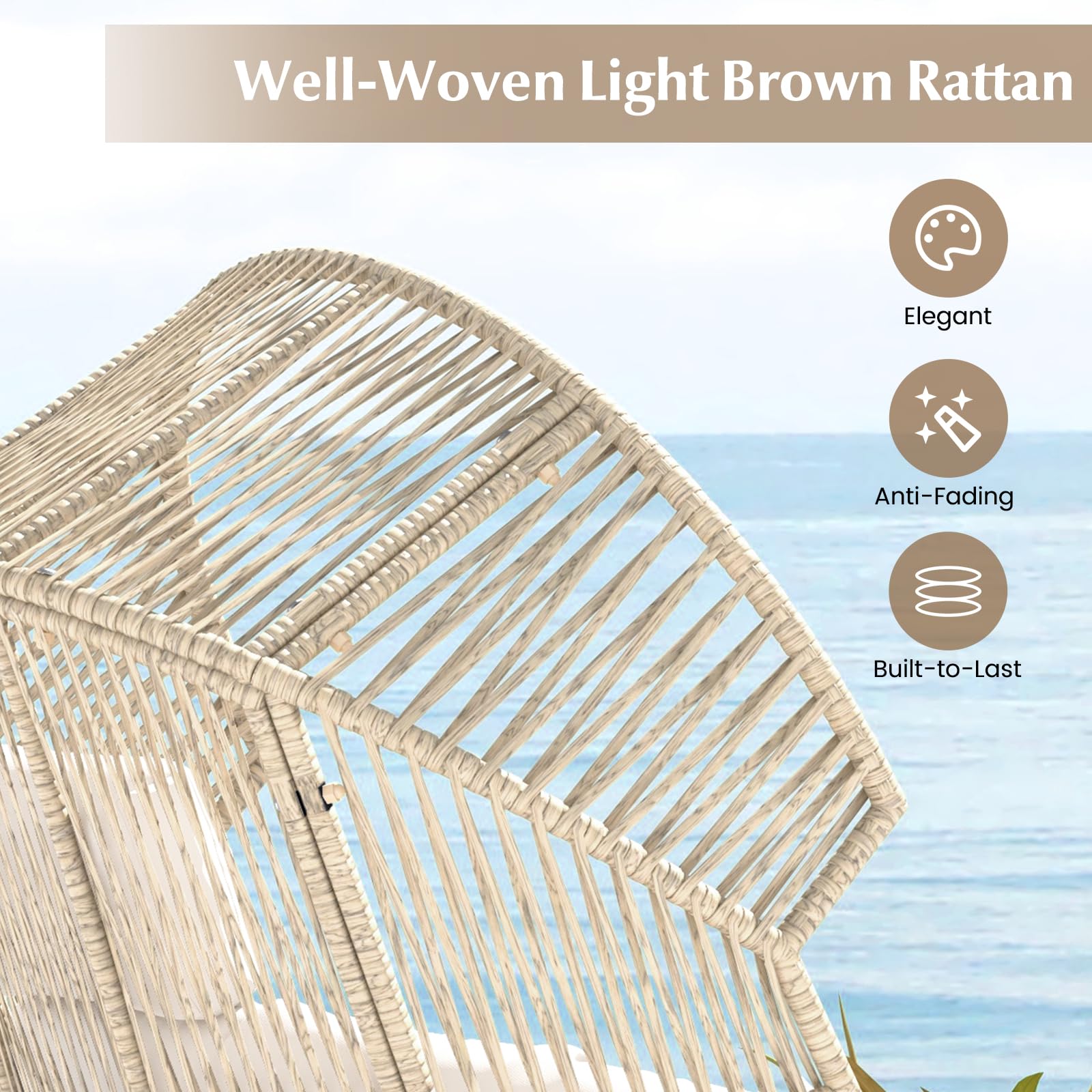 - Appealing Rattan Design: Crafted with eye-catching and well-woven light brown rattan, this patio egg chair adds a touch of elegance to any space. Also, the rattan surface is anti-fading and built-to-last for long-term use.