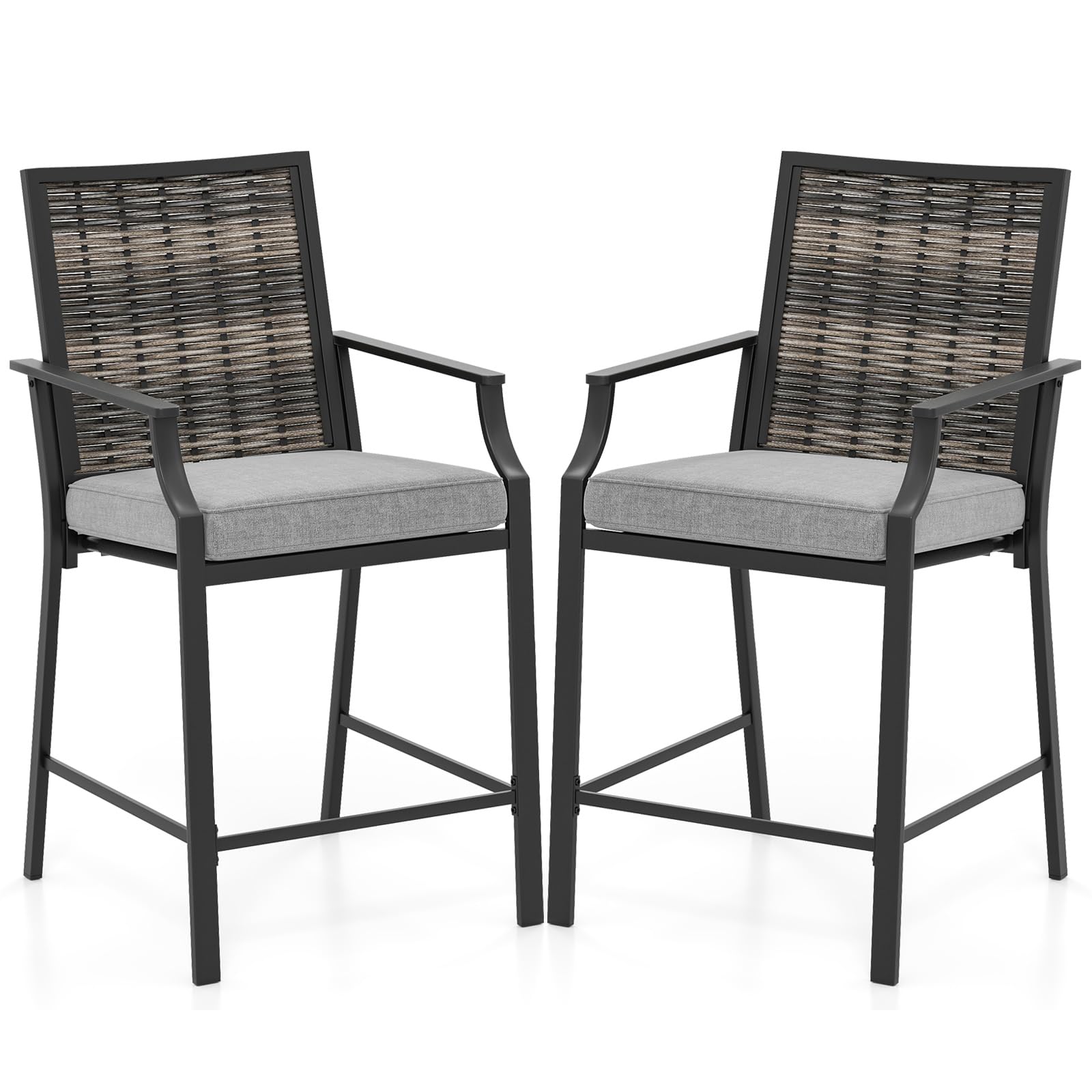 These counter height stools are intricately crafted from elegant rattan that not only looks attractive but is built to last. Each barstool comes with a removable cushion, secured by hook and loop fasteners or can be used without for a breathable seat. The ergonomically designed backrest and sturdy footrests ensure maximum comfort. Moreover, the robust metal frame supports up to 330 lbs and maintains stability with non-slip footpads. Whether hosting a sunset gathering or enjoying a quiet afternoon by the pool, these bar chairs with well-crafted details are the perfect addition for any occasion, offering a unique touch of elegance and superior durability.