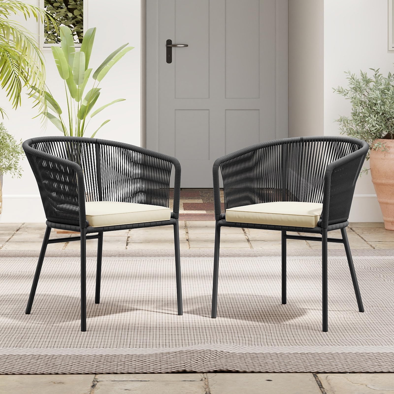 Tangkula Patio Chairs Set of 4 w/Curved Backrest