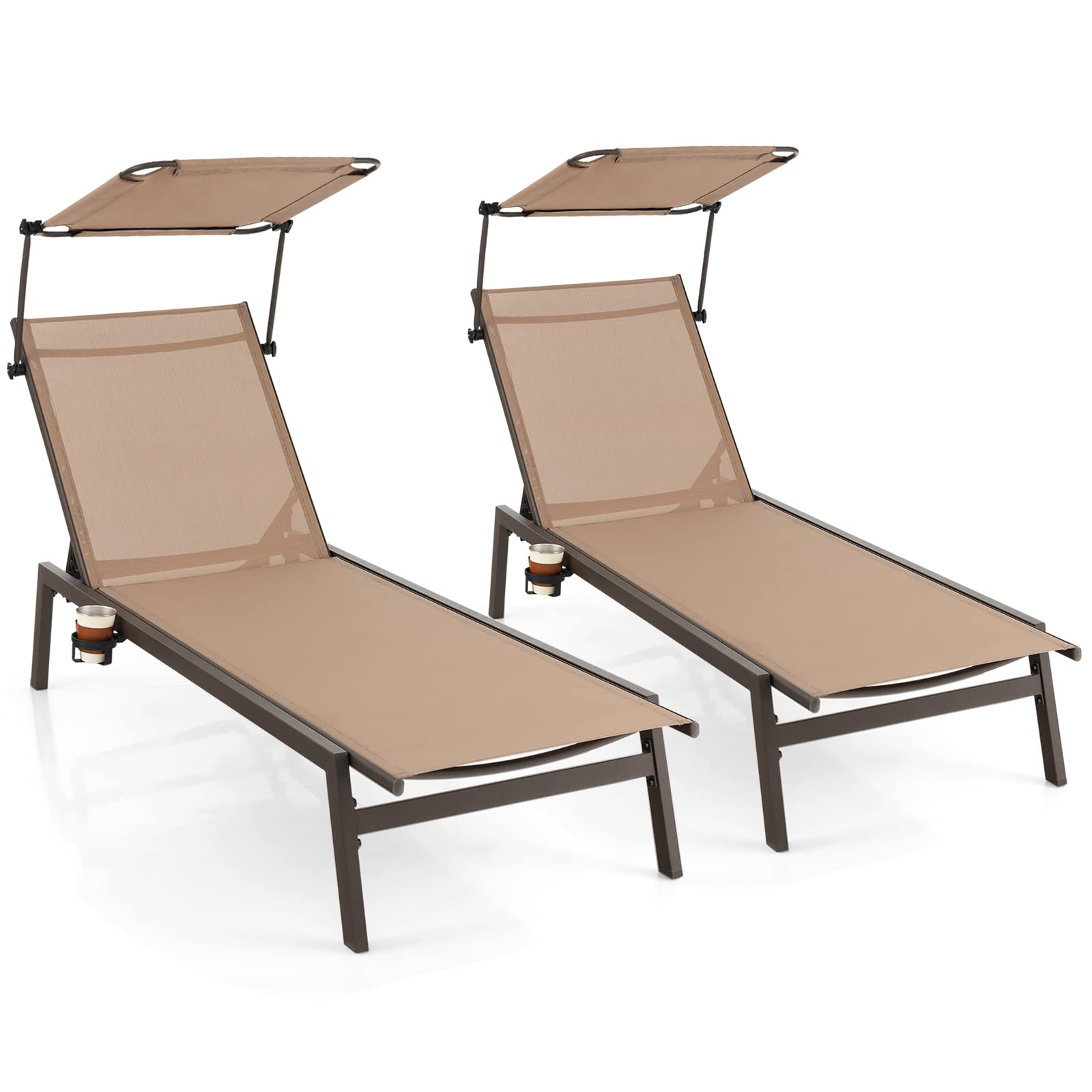 Tangkula Patio Chaise Lounge Chair, Outdoor Recliner with Adjustable Canopy & Cup Holder