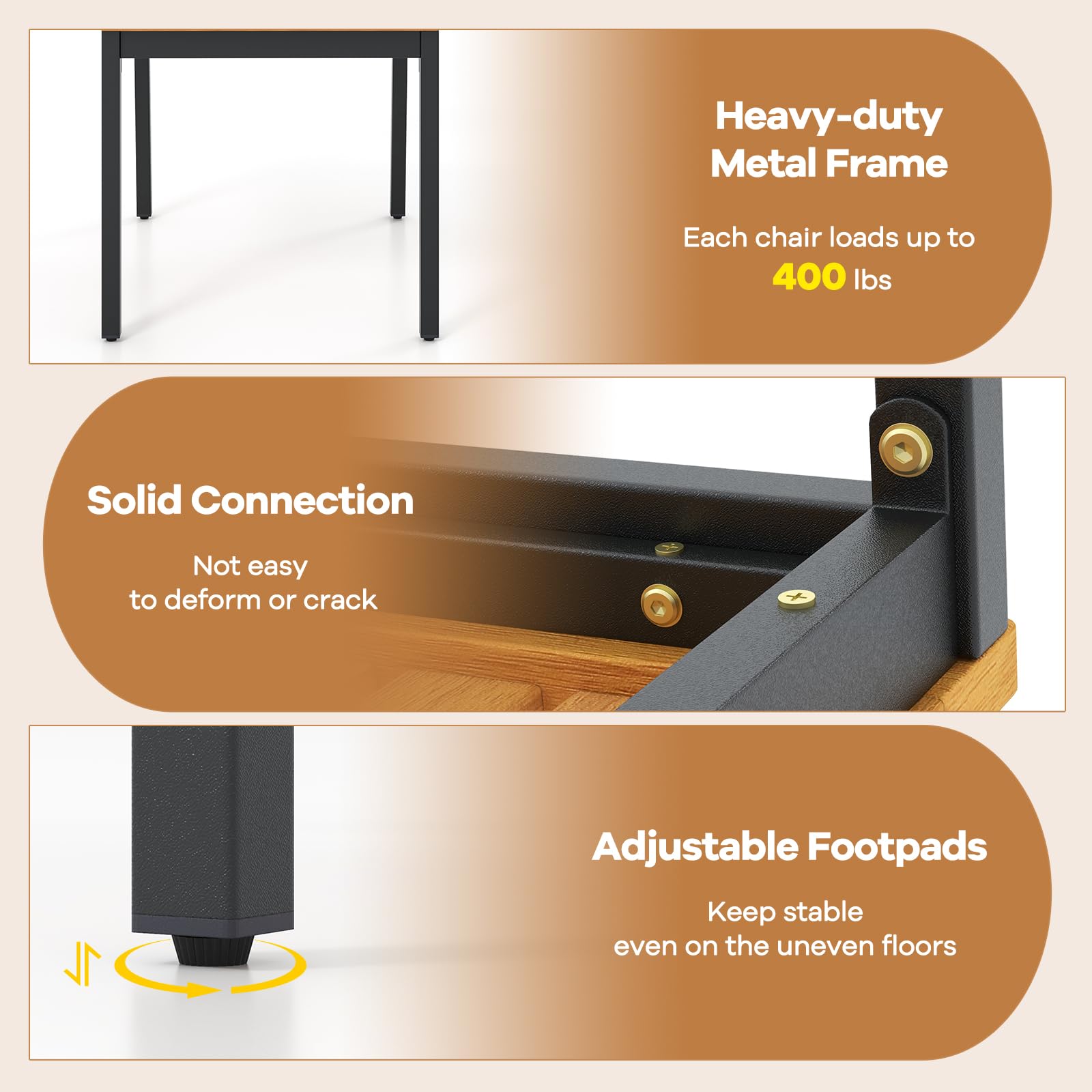 - Sturdy and Reliable Construction: Supported by a heavy-duty metal frame, each chair can bear weight up to 400 lbs, providing you with a secure seating experience. And there are adjustable footpads, keeping stable even on the uneven floors.