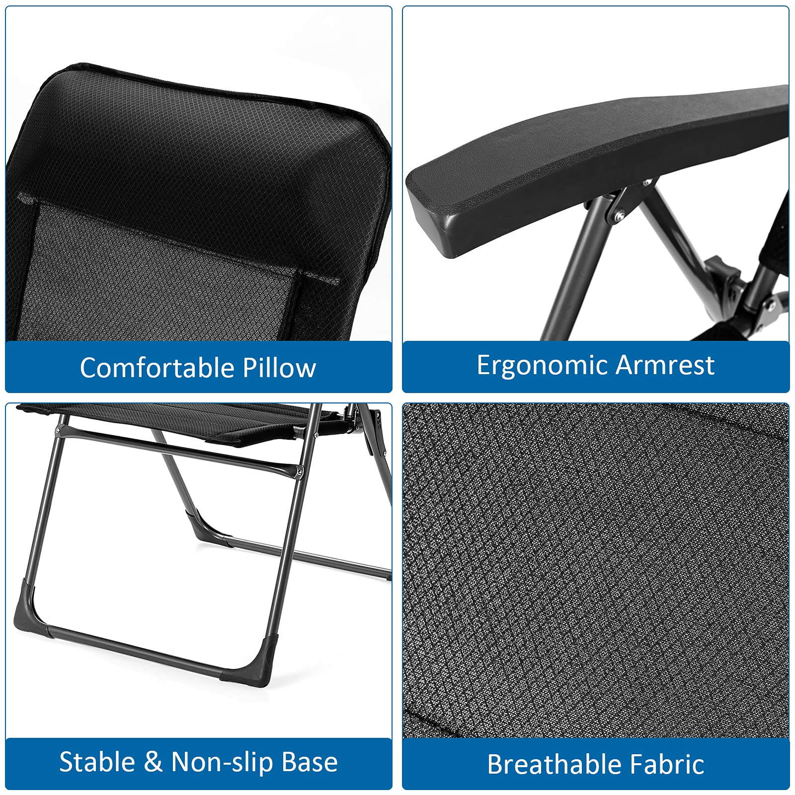 - The multifunctional folding camping chair is suitable for a pool, balcony, garden, deck, and more.
