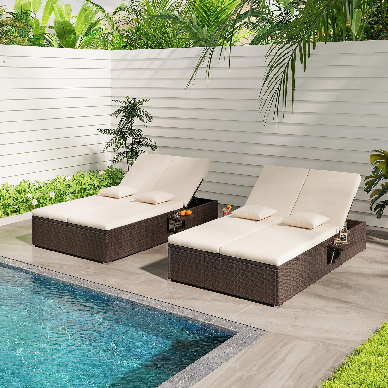 - Offer Relaxation to 2: Designed for 2, this patio double chaise lounge is perfect for couples or friends to share a moment of relaxation in the comfort of your backyard or poolside, enhancing your outdoor leisure time. Overall dimension: 76” x 43” x 13”-38” (L x W x H).