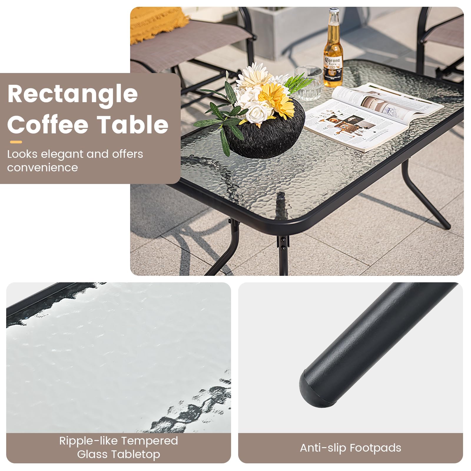 - Tempered Glass Coffee Table: The rectangle coffee table is perfect to put snacks, drinks, phones, and so on for your convenience. And its ripple-like tempered glass tabletop is elegant and easy to clean.