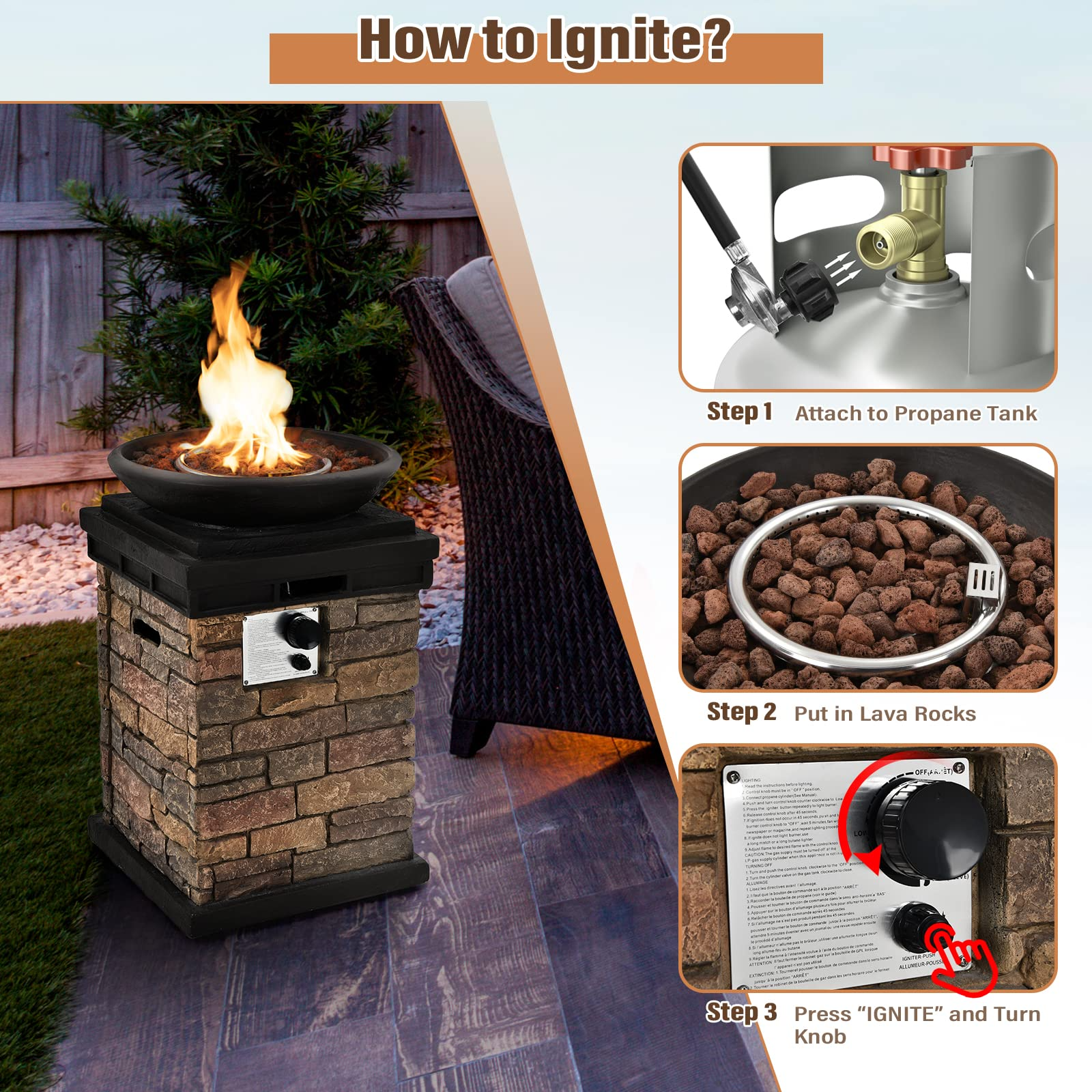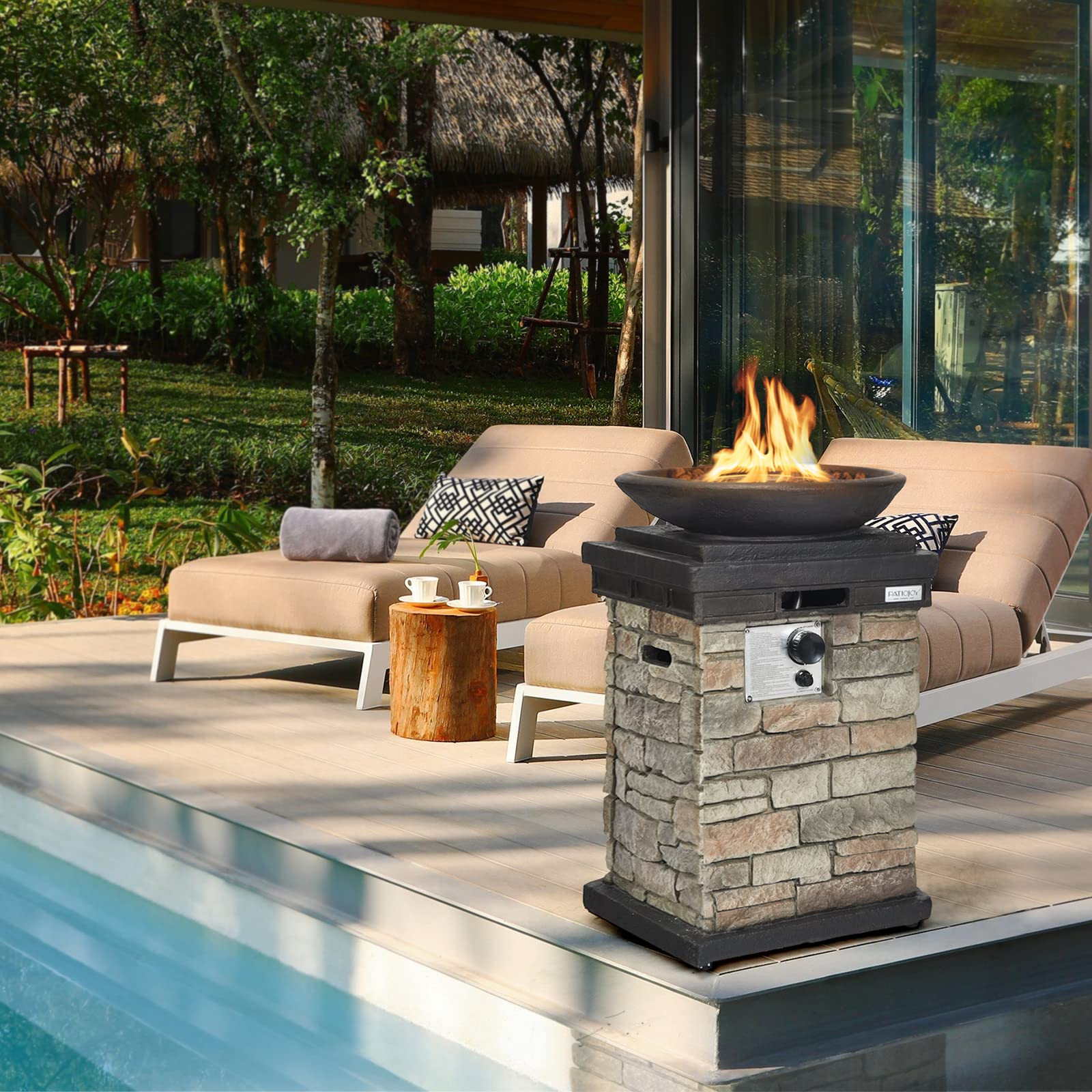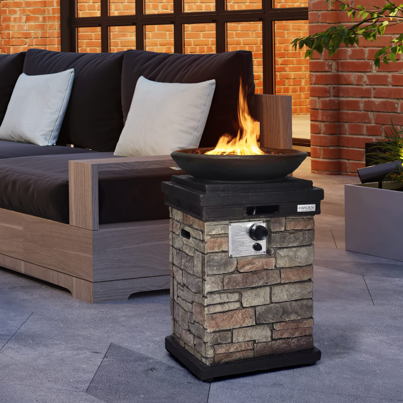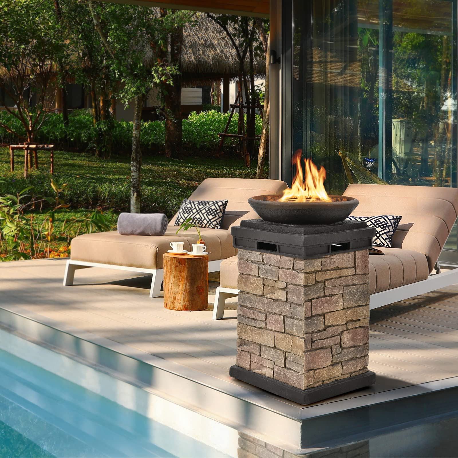 - Durable & Sturdy Construction: Made of durable magnesium oxide, the outdoor propane fire bowl can withstand the test of time. What's more, the sturdy construction with a natural appearance of simulated stone ensures a steady performance when this propane gas fire pit is in use.