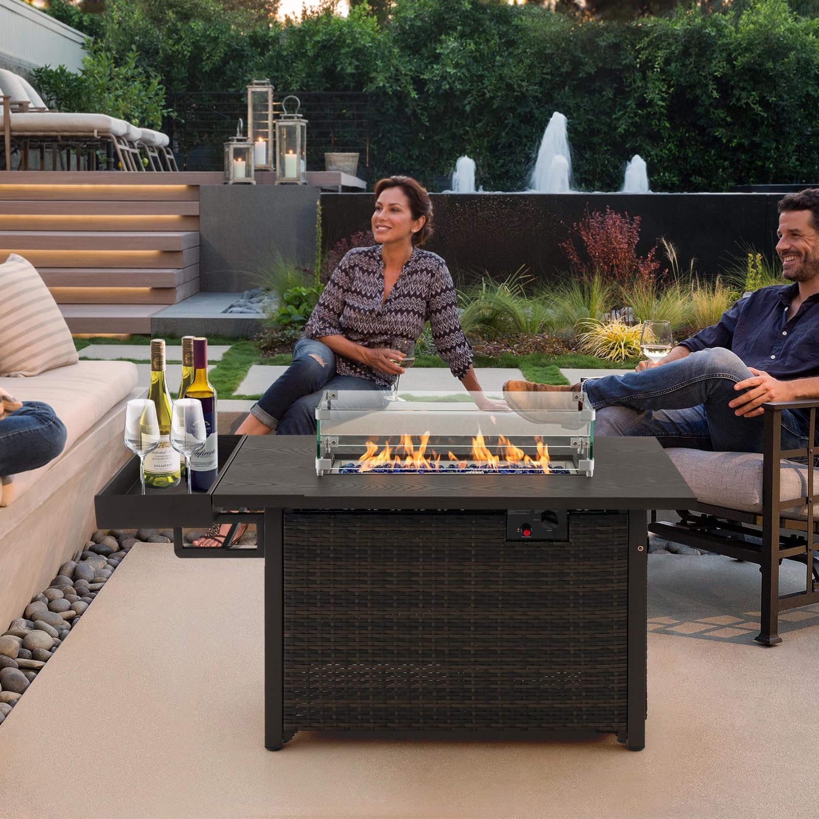 - Safe & Efficient Heating: Coming with sparkling and appealing glass stones, the fire pit will maximize the beauty of the dancing flame. And the stainless steel burner will produce 50,000 BTU heat output, which is also energy saving. Plus, the CSA certification makes the fire pit table more reliable to use.