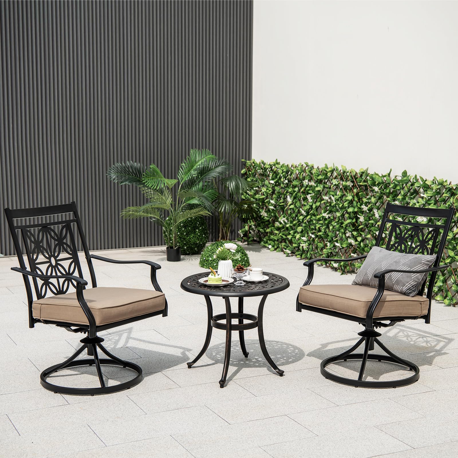 • 360° Swivel Chairs Set of 2: With 360° swivel design, the patio metal swivel chairs allow you to any desired direction freely. As a result, it is easier for you to communicate with your partner.