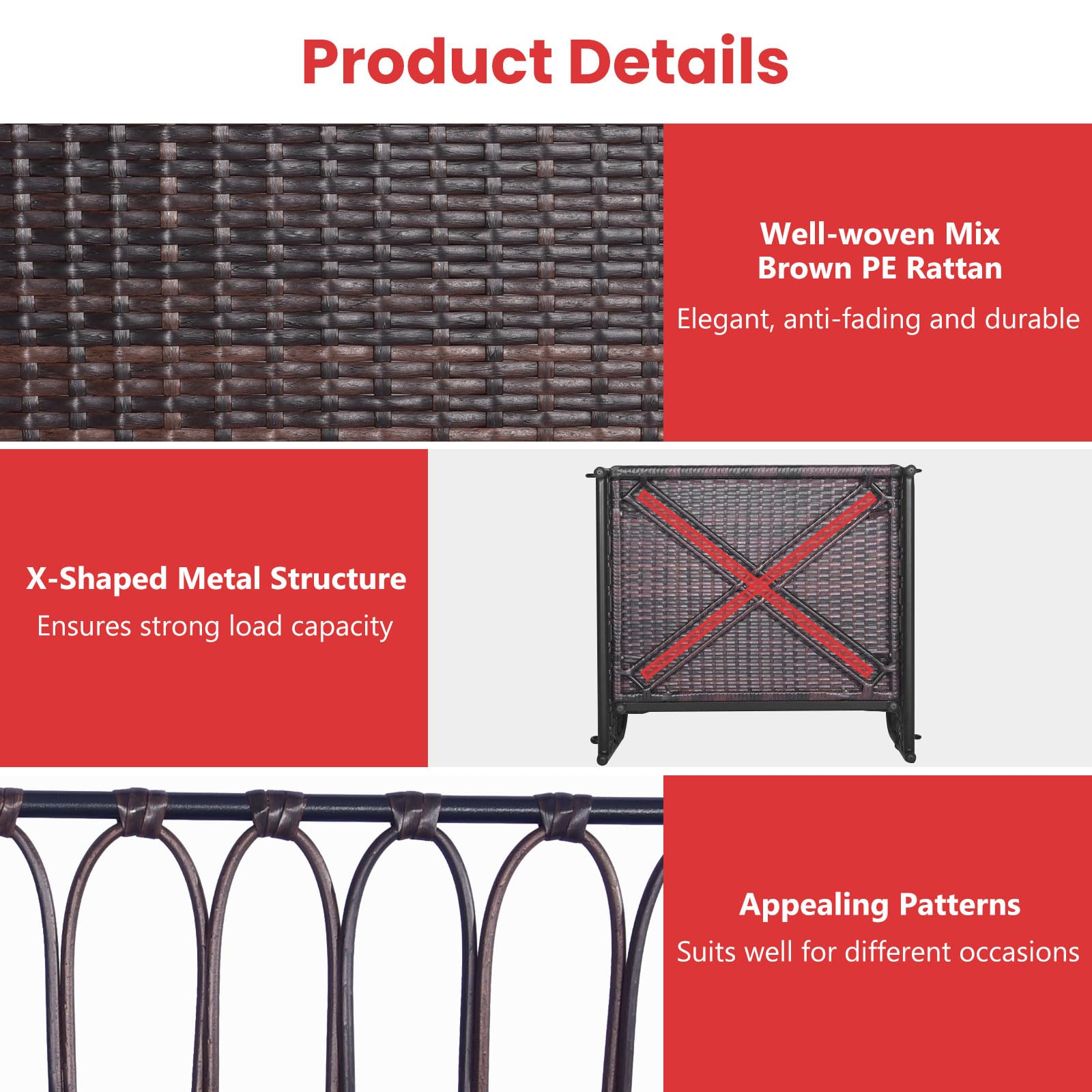 • Premium PE Rattan: The seat made of well-woven mix brown PE rattan is elegant, anti-fading, and durable. Moreover, the 2 sides with appealing patterns make the porch swing suit well for different occasions.