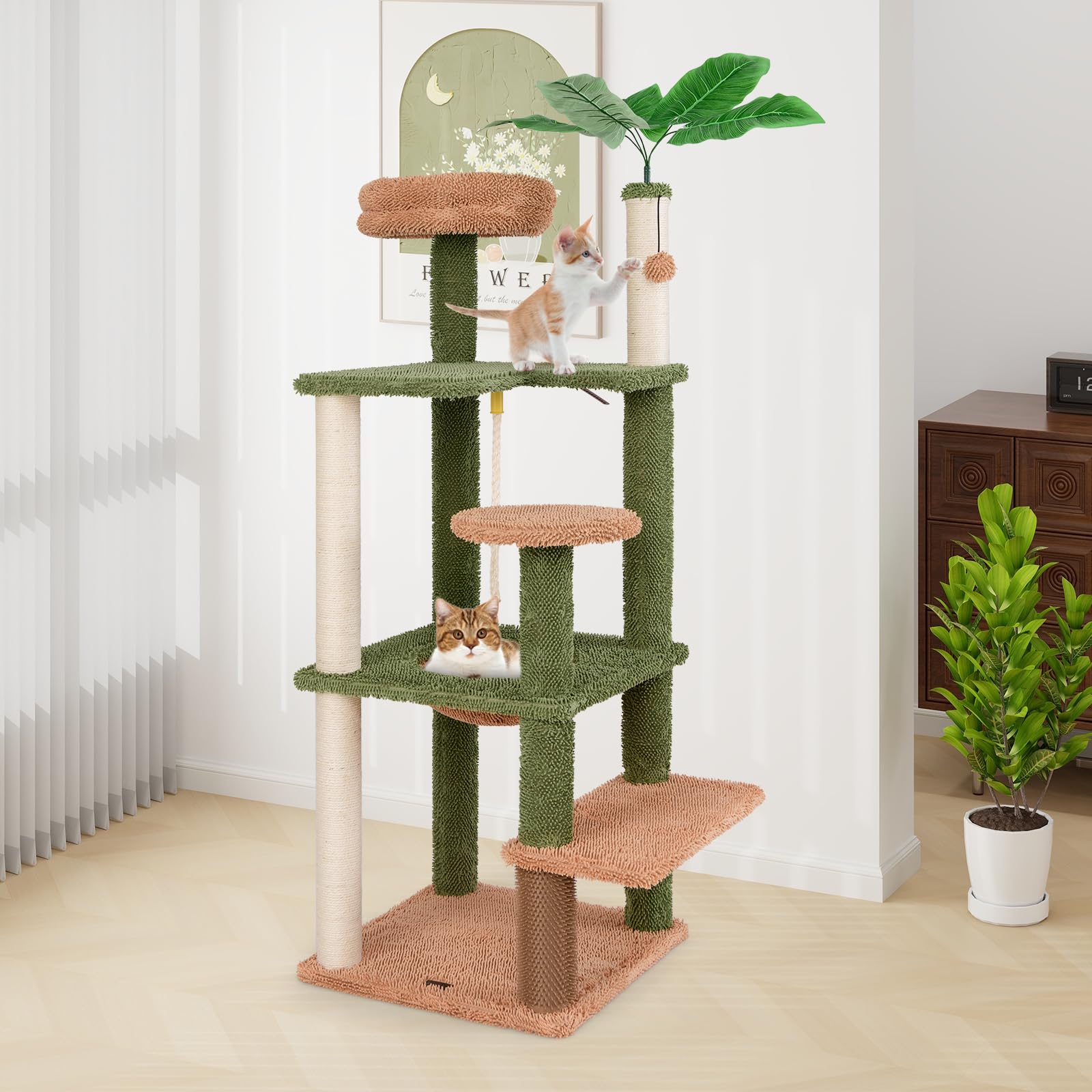 - Multi-Layer Fun: The 60” tall cat tower comes with 6 layers for cats to climb up and down, including a cozy top perch for observing their surroundings, a spacious platform for lounging, and a comfy hammock for relaxation.