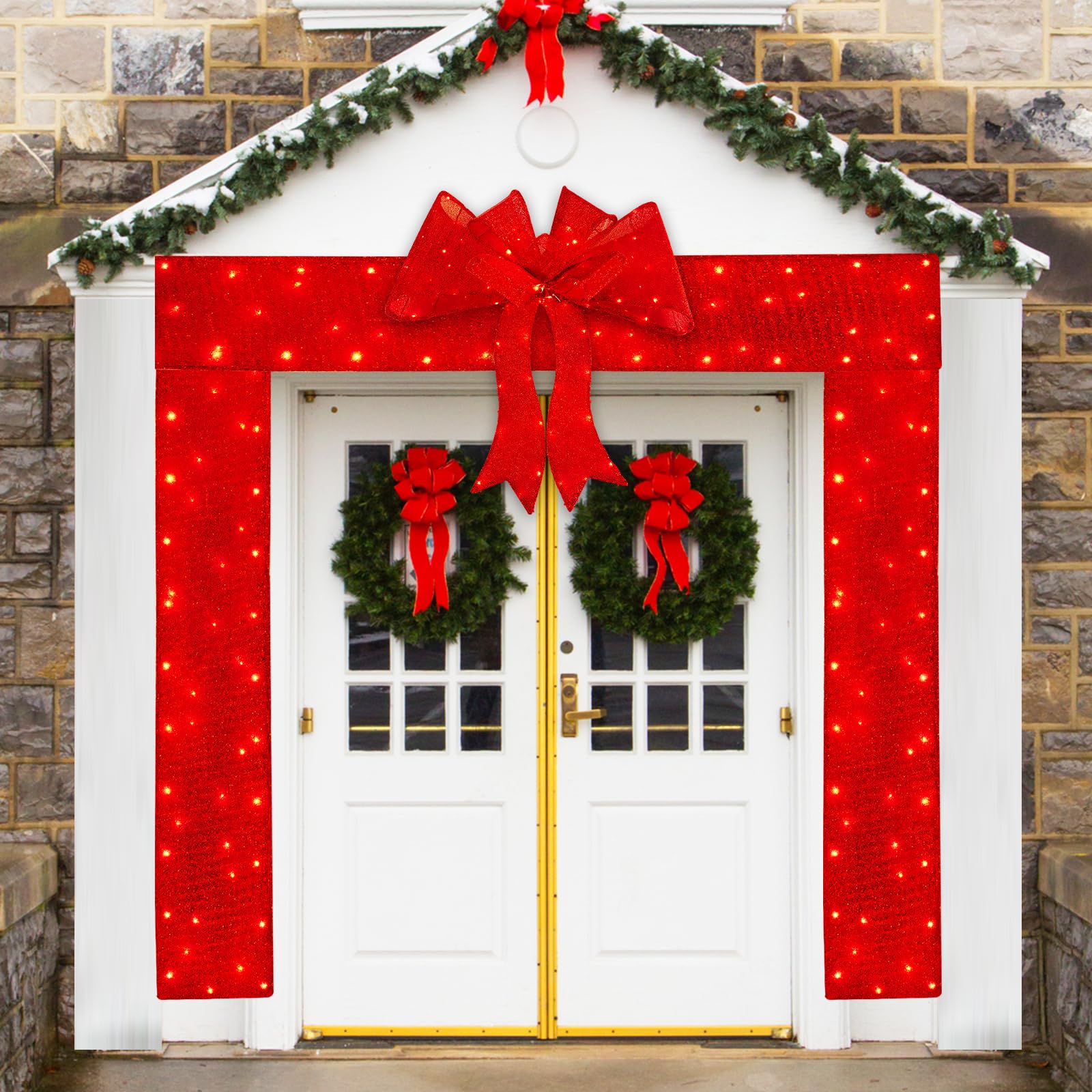 - Detachable Bow: This pre-lit Christmas doorway arch features a stylish, detachable red bow that adds a charming touch to your entrance. Easily attach or use along the bow with the convenient hanging ring to suit your festive preferences.