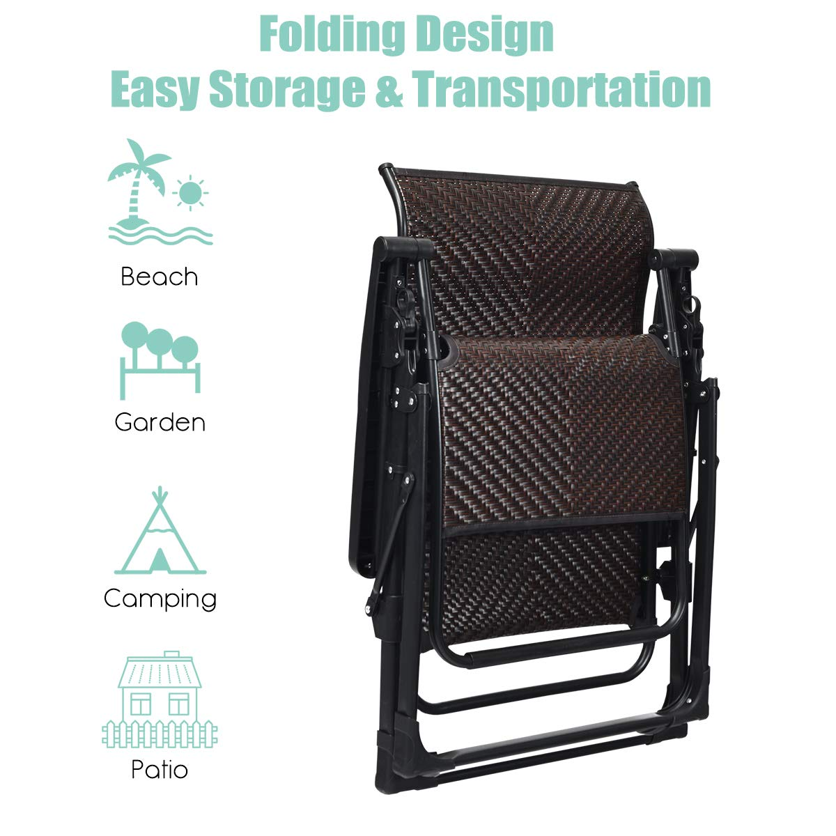 Tangkula Rattan Zero Gravity Chair, Outdoor Adjustable Folding Lounge Chair with Widened Armrest & Locking System