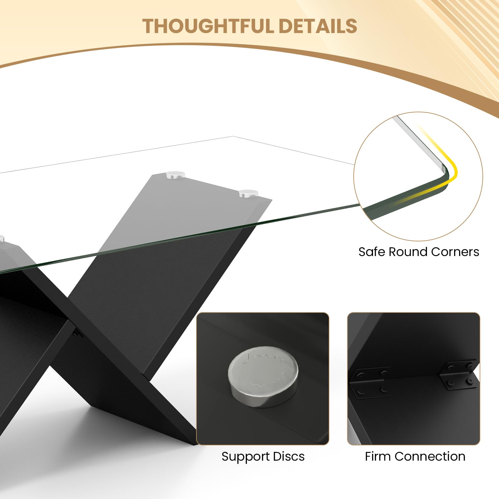 - Sleek Design of Glass Top: This rectangle coffee table features a clear tempered glass tabletop that not only enhances your room visually but also offers robust protection against scratches and heat. Its rounded corners effectively prevent bumps or scratches.