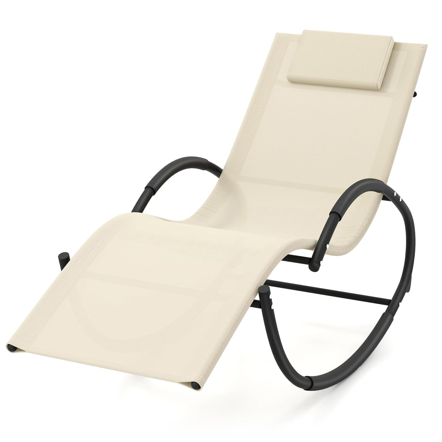 - Superior Lying Comfort: The ergonomic patio rocking chair perfectly fits your body shape and comes with soft padded armrests for enhanced comfort. The removable headrest offers personalized coziness and support.