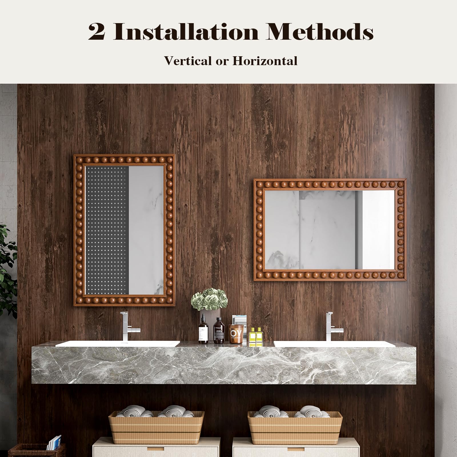 Tangkula Rustic Wall Mirror, 24" x 36" Rectangle Wall Mounted Mirror w/Solid Wood Frame