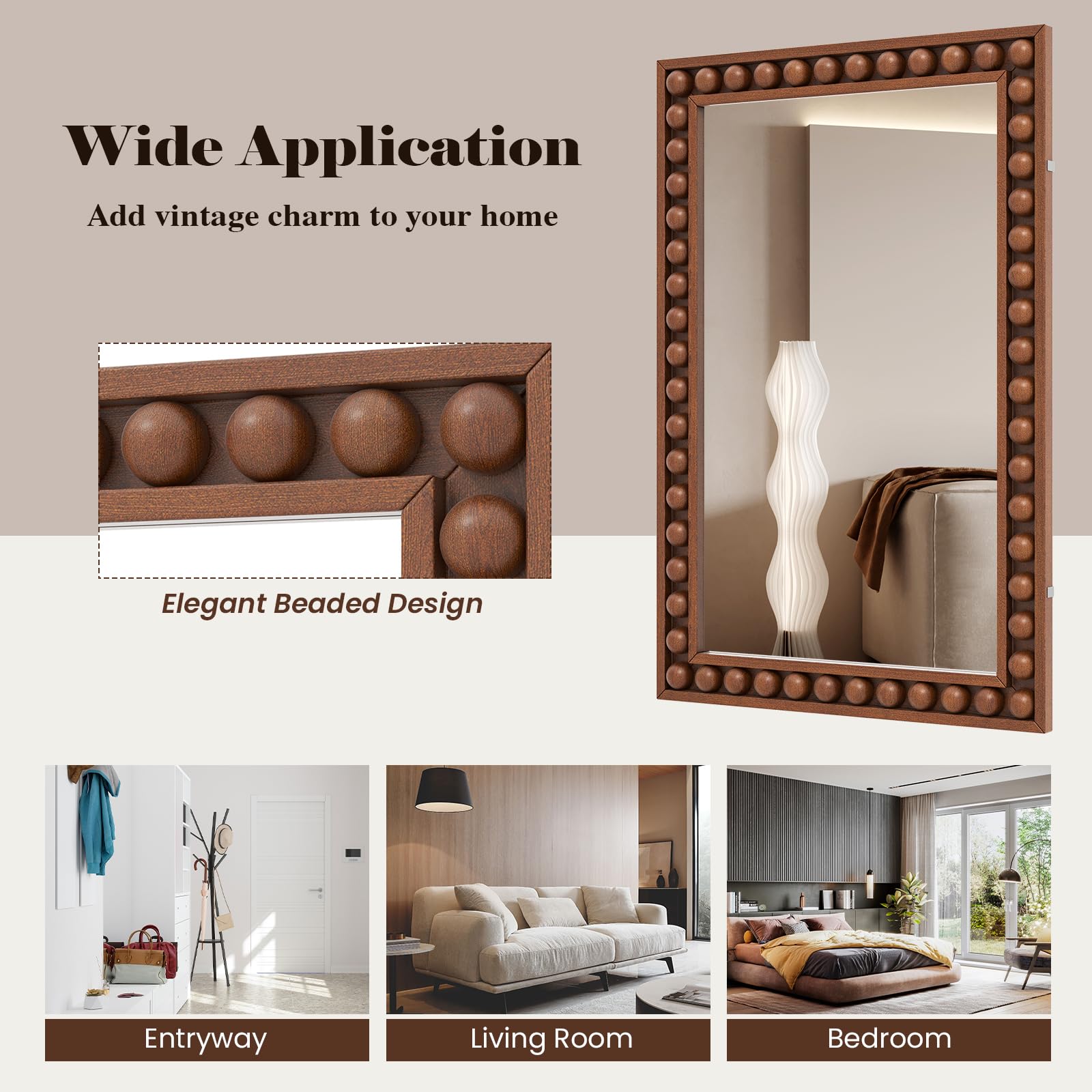 • 【Elegant Farmhouse Style】The wall mounted mirror features an elegant beaded design that adds a touch of farmhouse charm to any room. Its aesthetic appeal makes it a perfect decorative piece for your entryway, living room, bedroom and more.